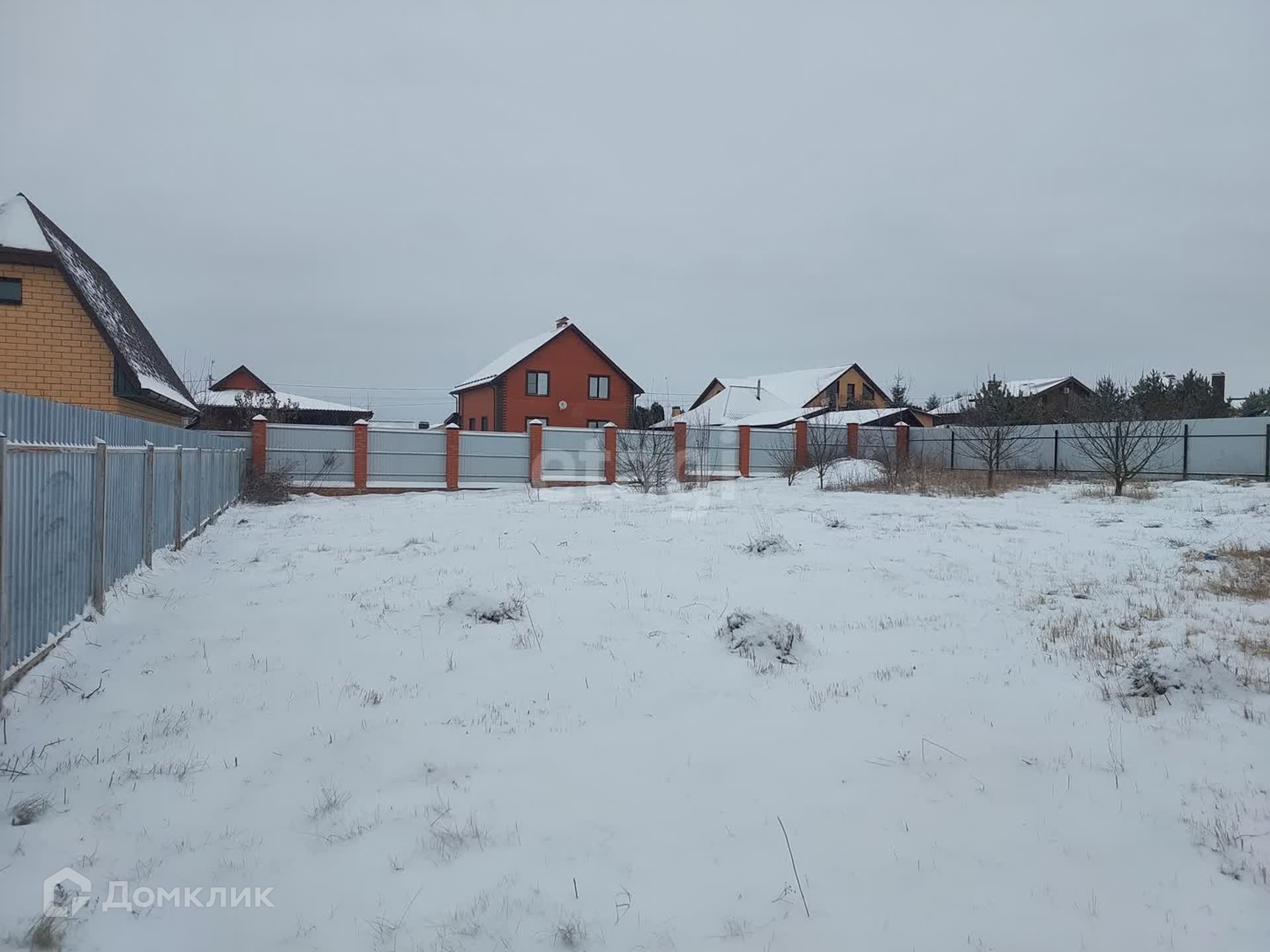 Участок ровный. Забор с трех сторон от соседей. Асфальтированная дорога.