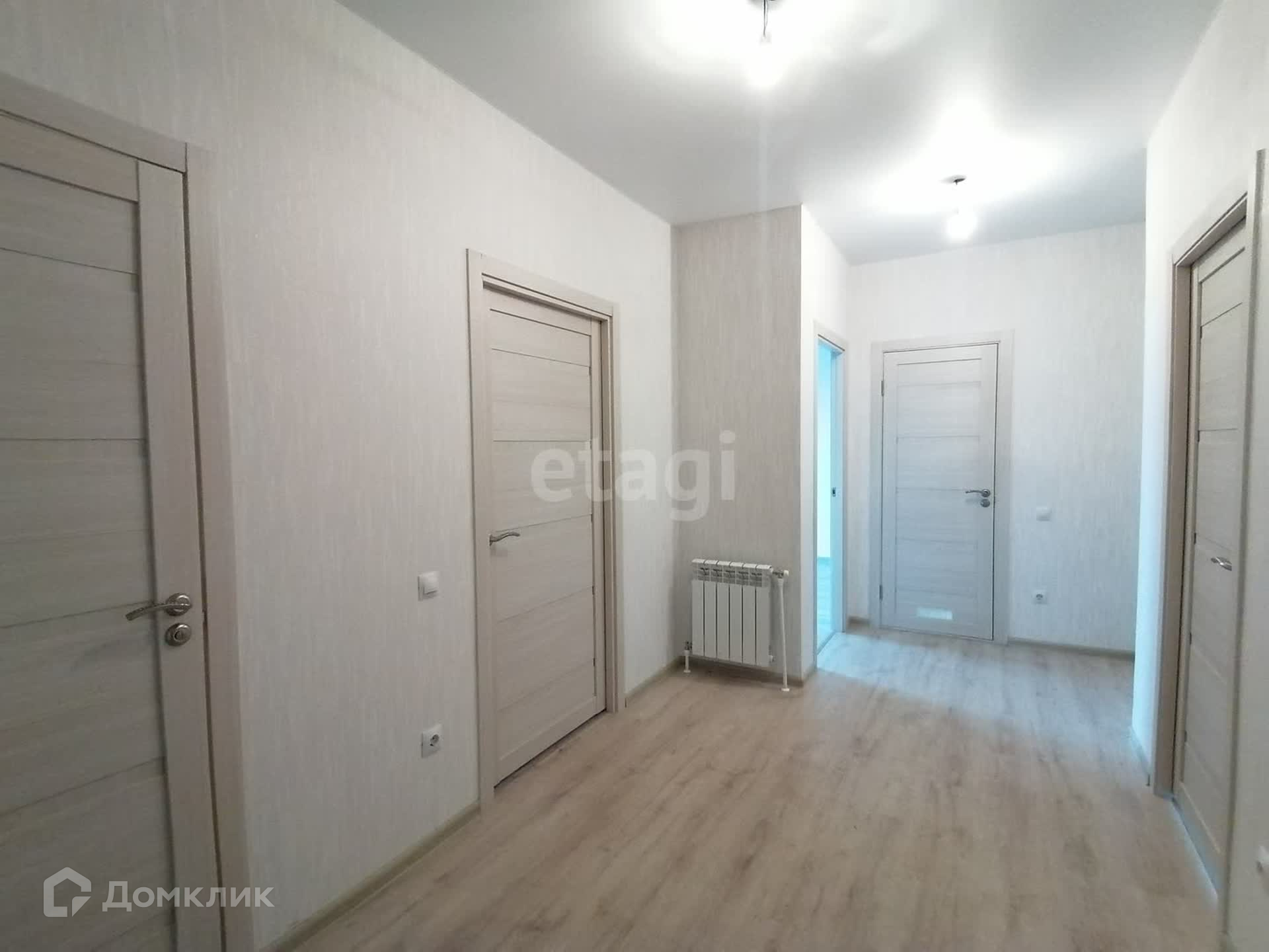 В доме 3 спальные комнаты; 13,8 кв.м., 11,4 кв.м и 12,6 кв.м, кухня-гостиная 31,54 кв.м, ванная комната 3,9 кв.м, отдельный туалет 2,4 кв.м., коридор с люком на крышу. Также к дому пристроено широкое крыльцо в 7 кв.м. и терраса площадью 10,6 кв.м. Дом построен застройщиком ЖБК-1.
