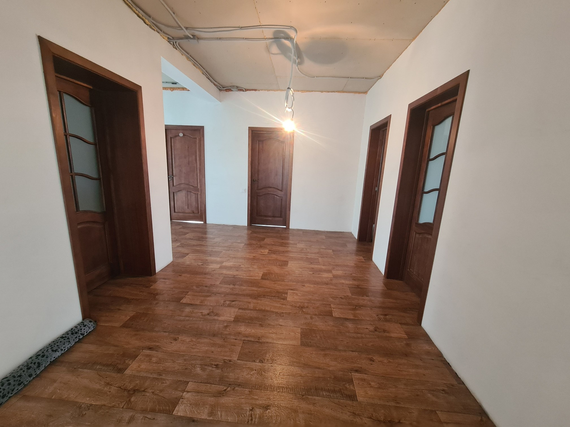 Продуманная, удобная планировка: гостиная, пять спален, два санузла, просторная кухня с выходом на террасу, топочная. Первый этаж оборудован системой теплый пол.