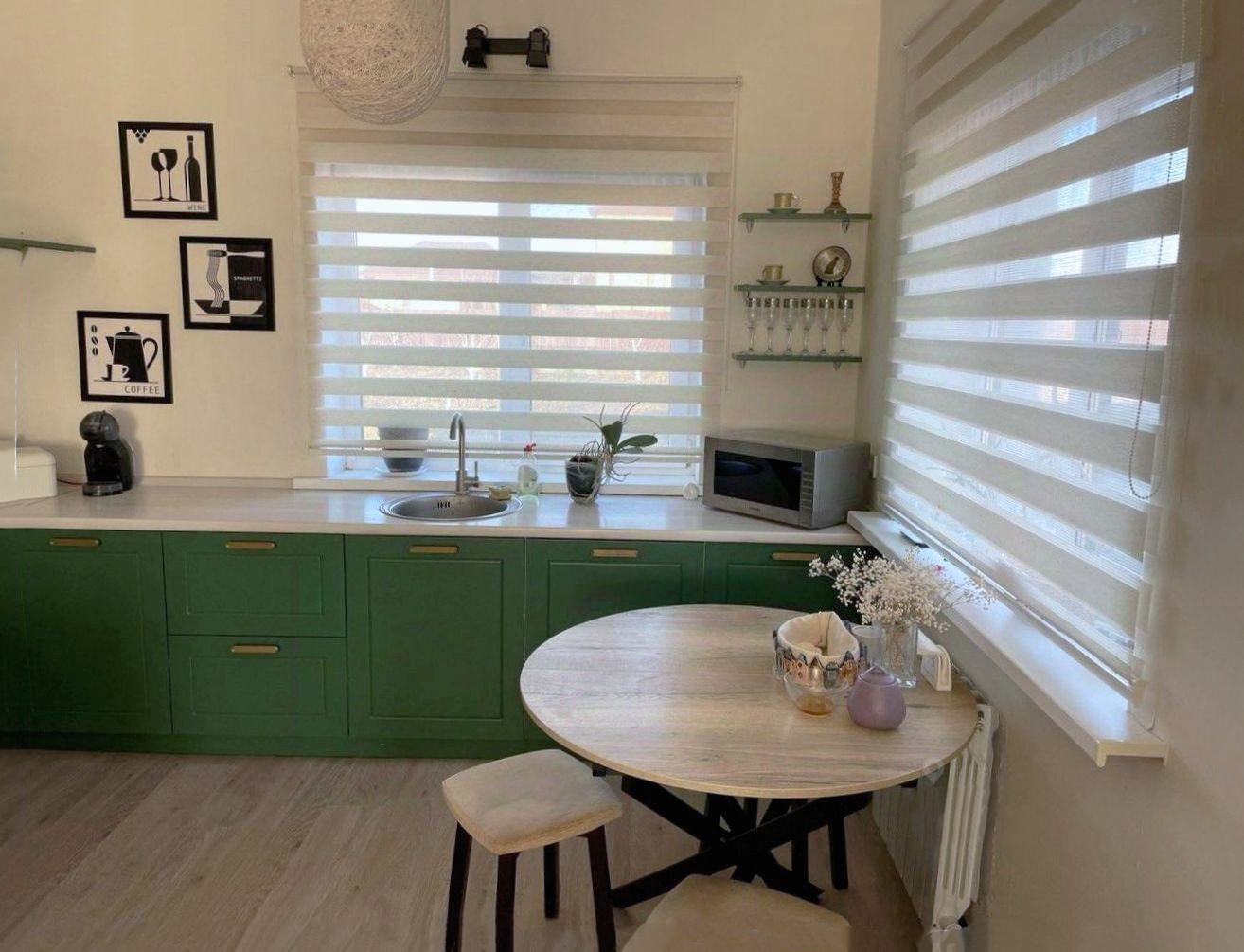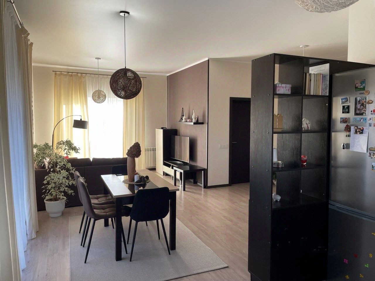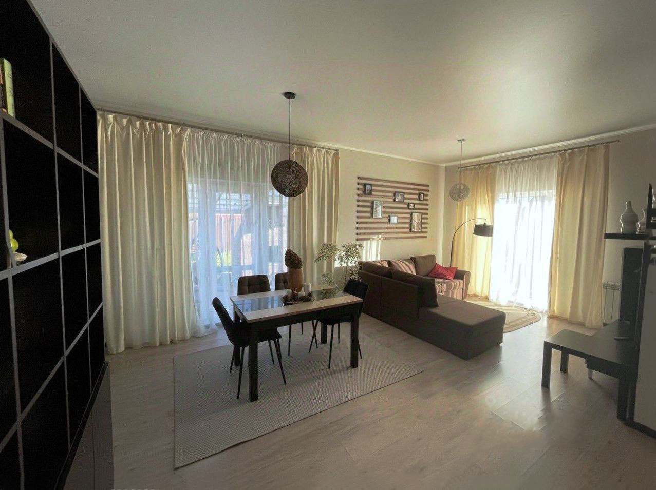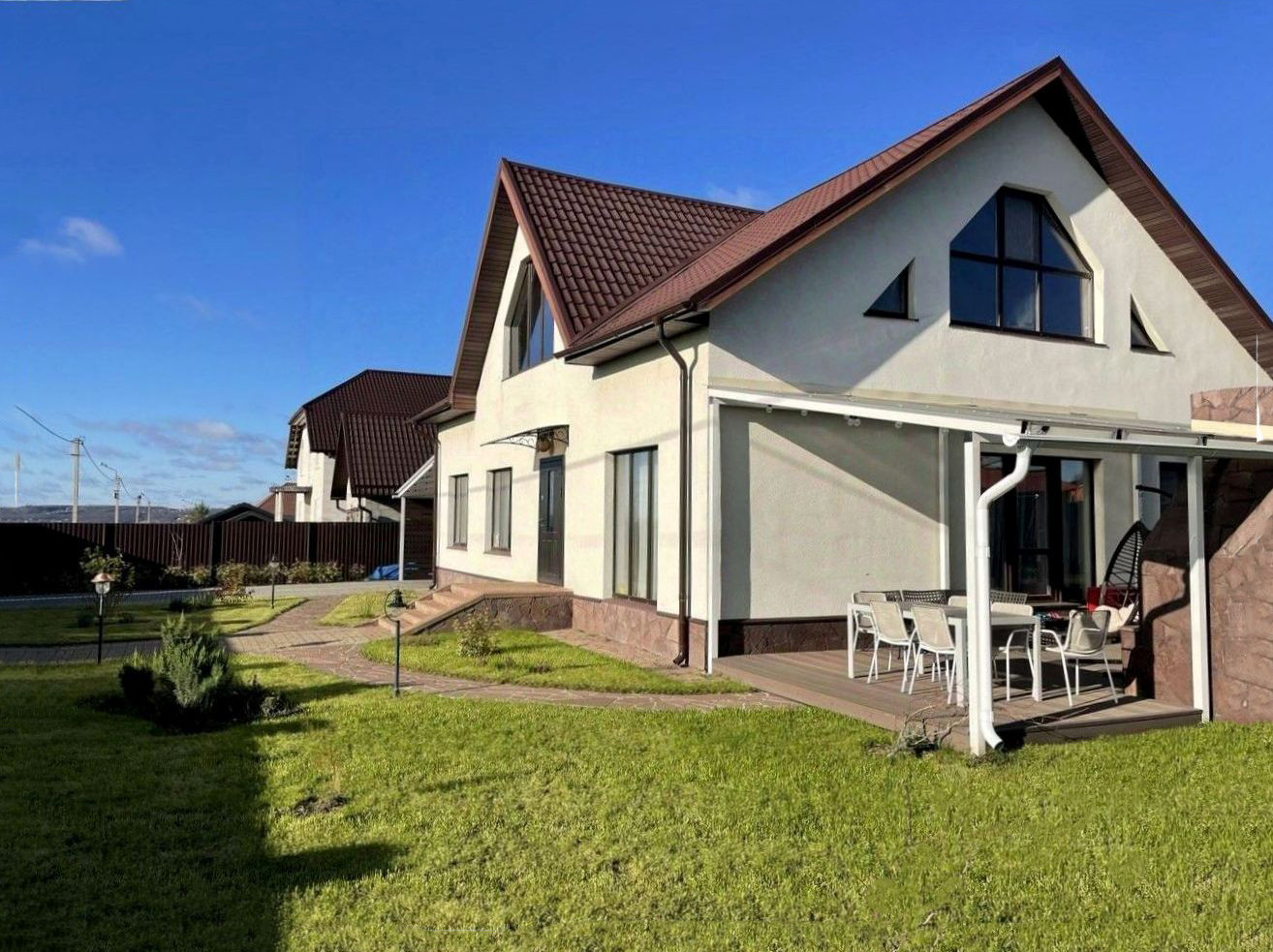 - В доме 3 изолированные комнаты, просторная гостиная, совмещенная с кухней, большая ванная комната, отдельный туалет в котельной. Все комнаты светлые, в гостиной — окна в пол. Кроме основного входа в дом есть выход на террасу из гостиной и еще один выход на задний двор. Дом продается с мебелью, включая уличную на террасе (IKEA). На кухне есть вся техника, вкл. посудомойку (Bosh), фасады из мдф. Котел Baxi (Италия).