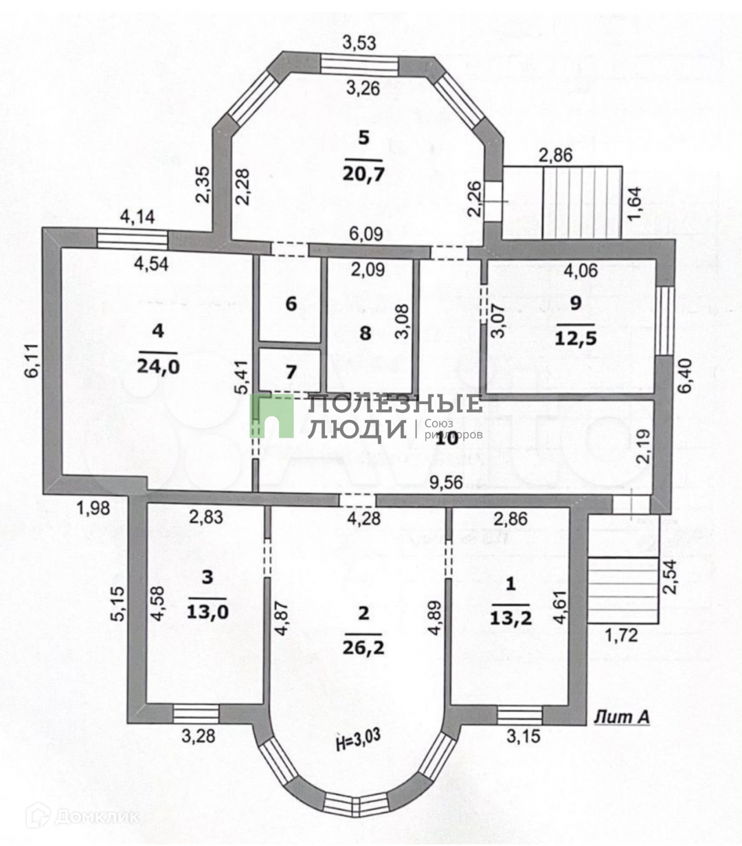 Высота потолков 3 метра, что делает помещения просторнее и светлее