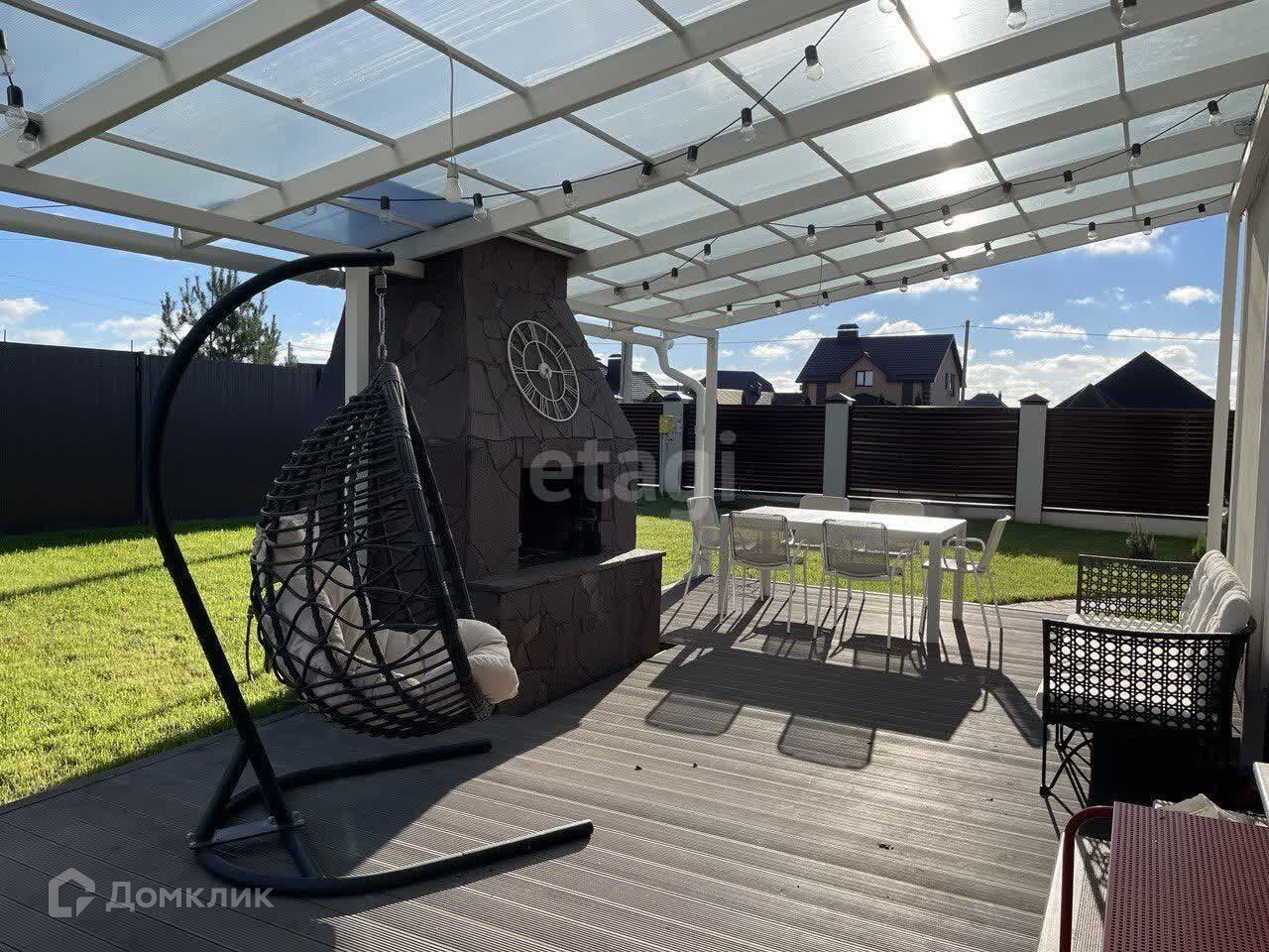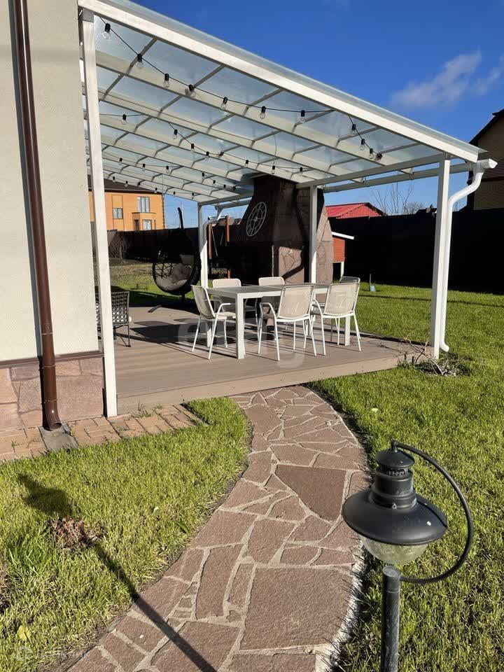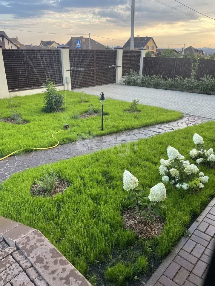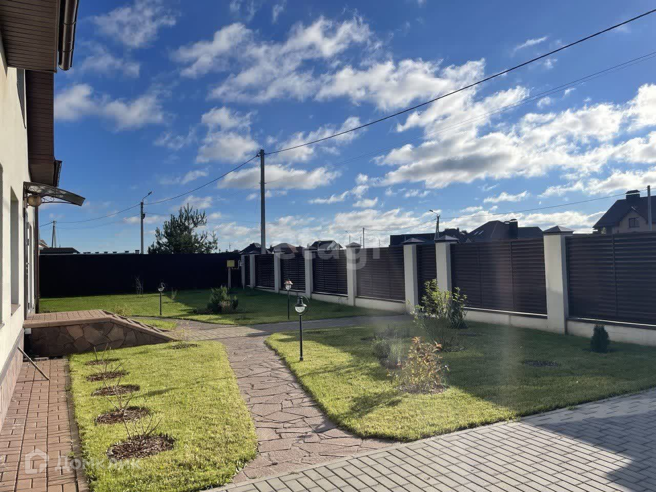 Благоустроенный двор с декоративным озеленением и освещением. Во дворе навес для машины (24 кв. м.) и пристройка для хозяйственных нужд (16 кв. м). Терраса с камином. Плодоносящий сад — деревьям 7-13 лет. Участок полностью огорожен, есть водопровод с 4 точками подключения для полива. Ворота с автоматическим приводом. Есть садовый инвентарь, инструменты и техника (электротриммер, аккумуляторная газонокосилка Маkitа, сварочный аппарат, бетономешалка).