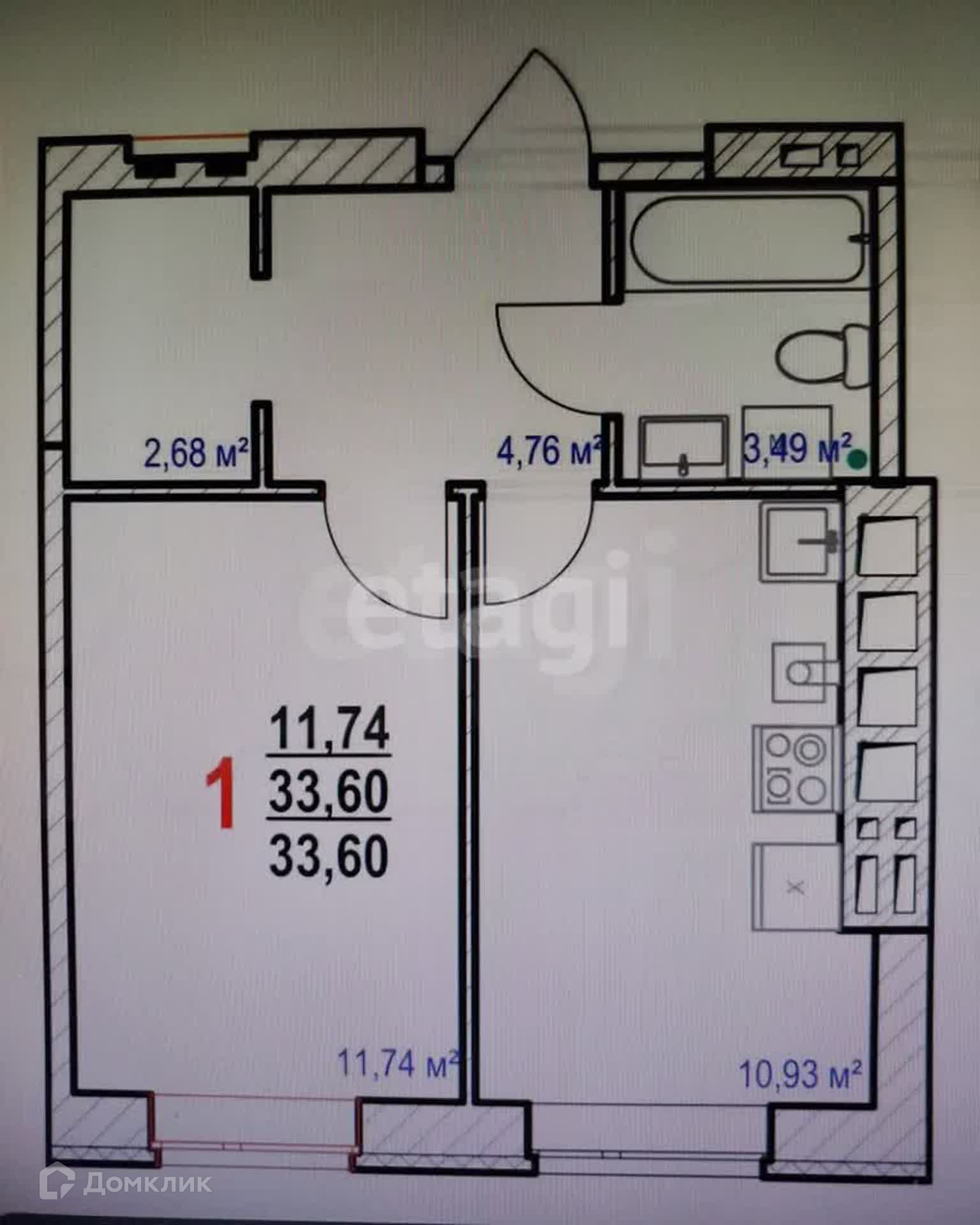 Общая площадь 33.6 м2