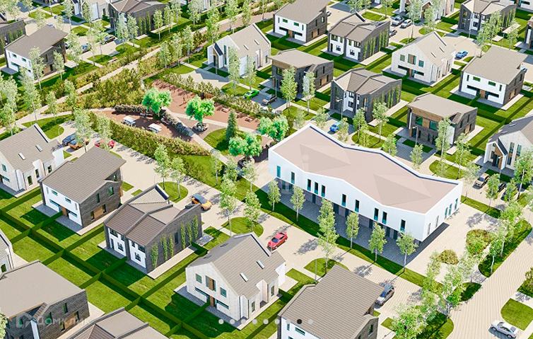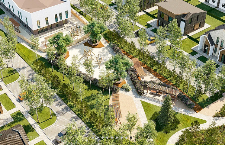 Через весь жилой квартал проходит парковая аллея с прогулочными дорожками, зонами отдыха, спортивными и детскими площадками.