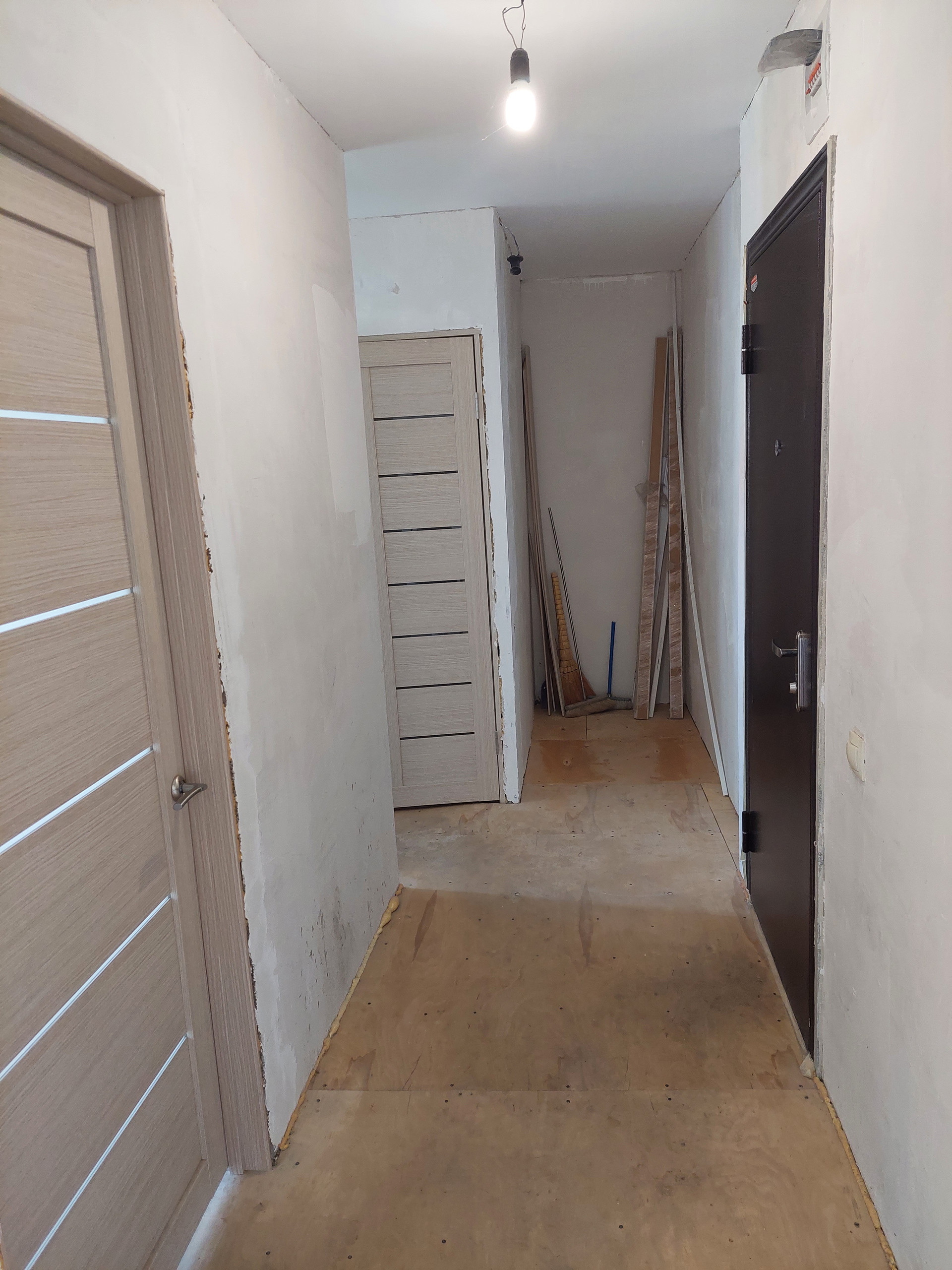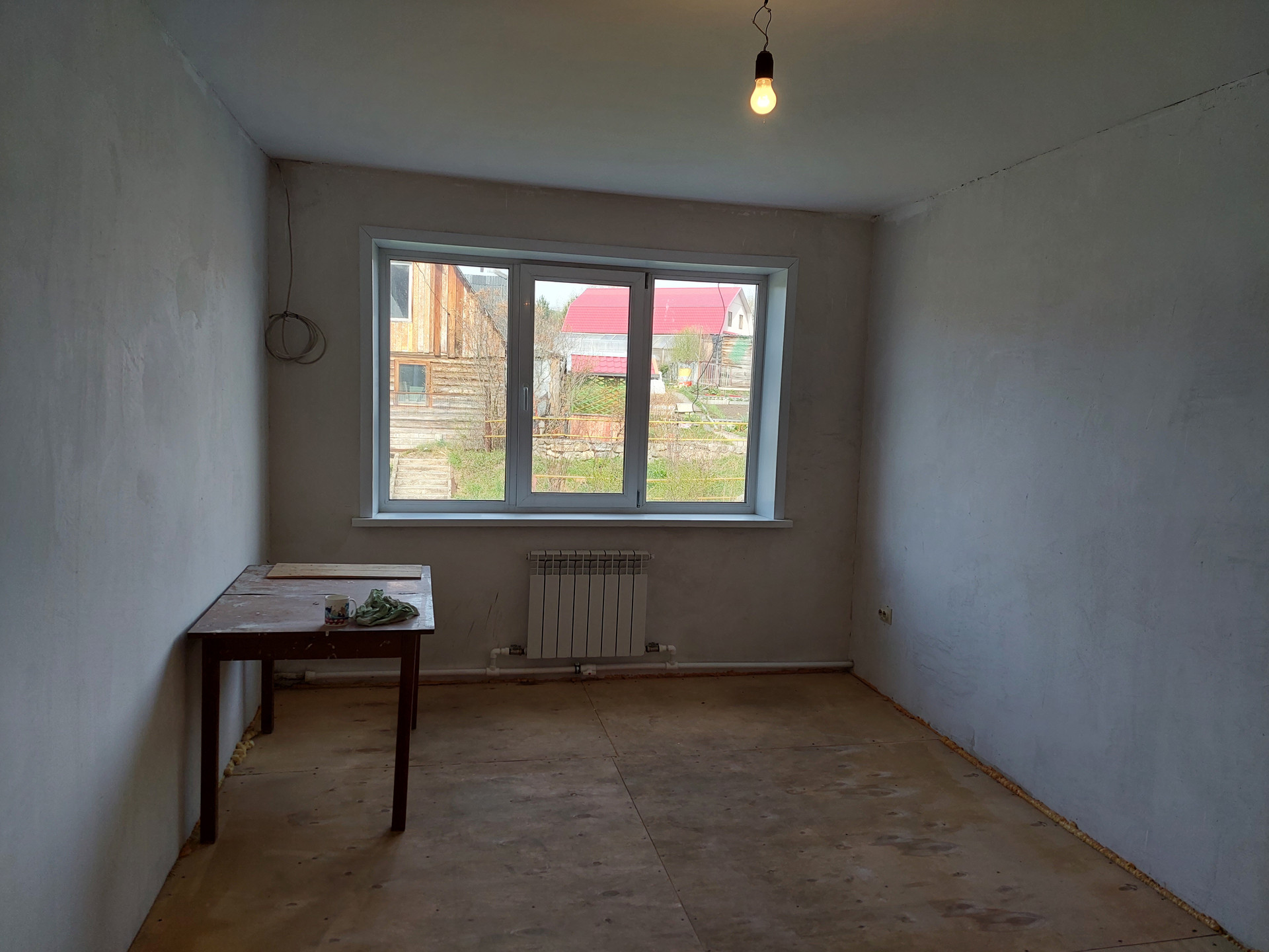 пос. Новосафоновкий, установлены стеклопакеты, потолки выровнены, на полу фанера, новая проводка в квартире, батареи и трубы, межкомнатные двери, санузел кафель, водосчетчики, новая сантехника, на потолке - стеновые панели, комнаты раздельные. Документы готовы. Рядом детсад, магазин, администрация, остановка.