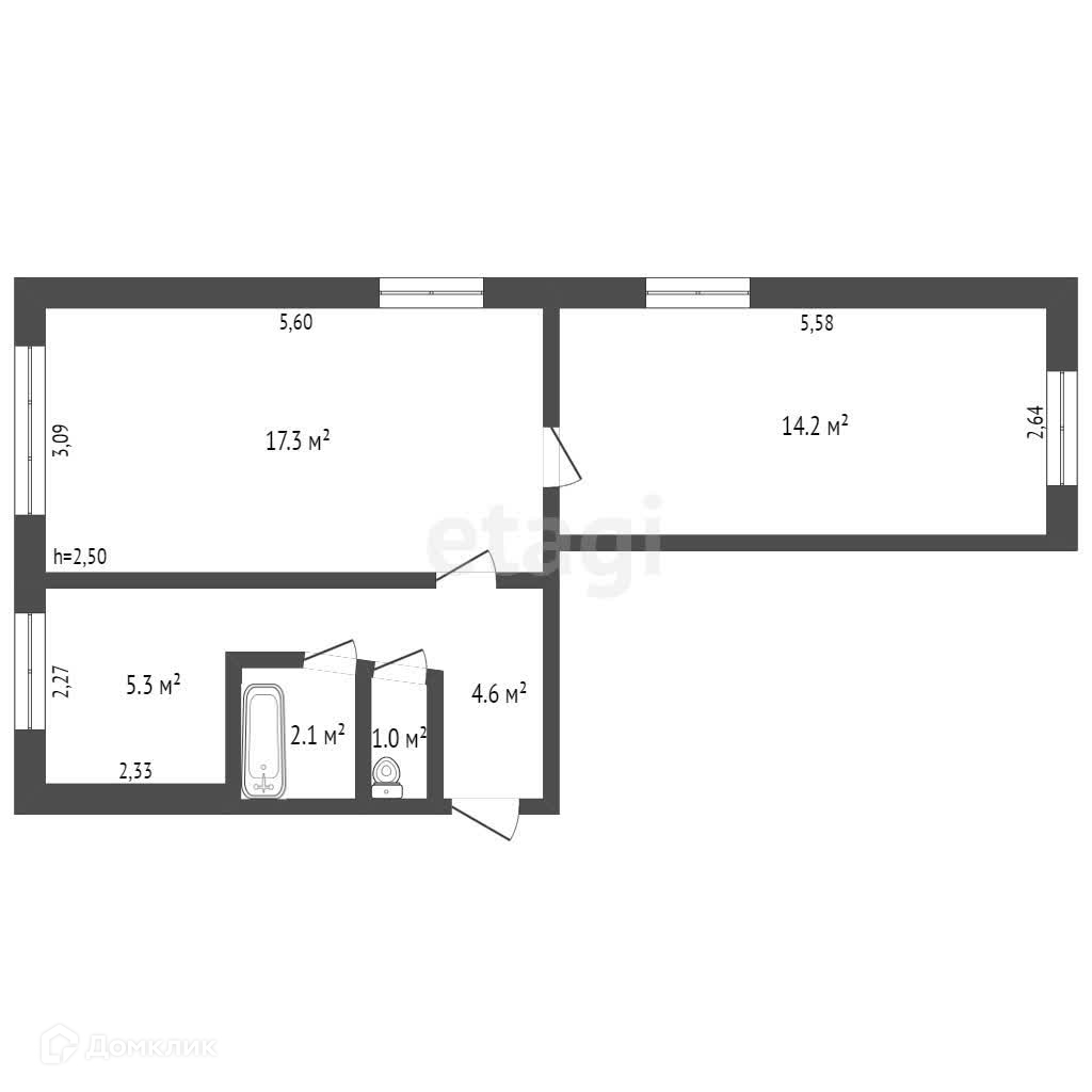 Общая площадь 44.5 м2