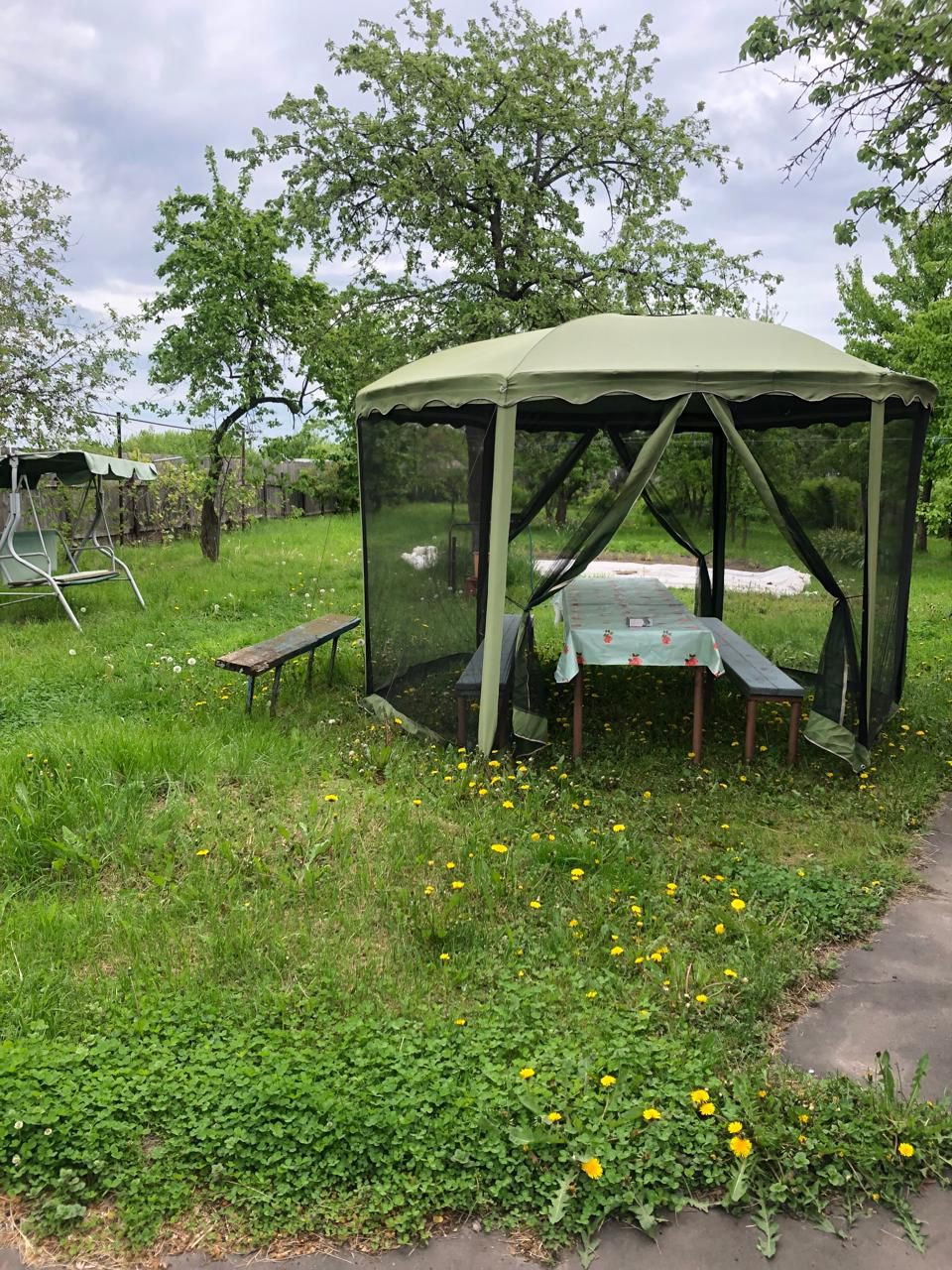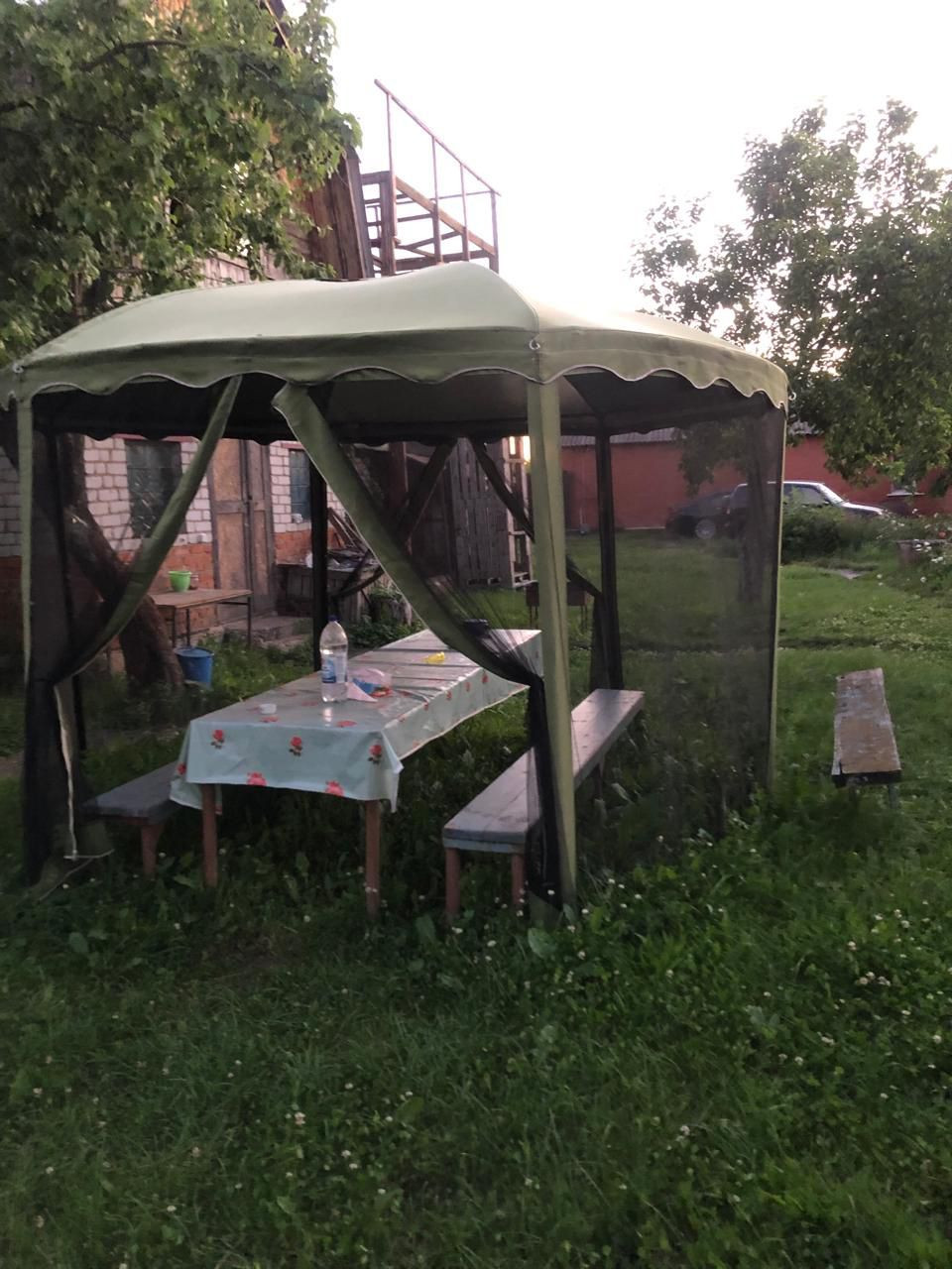 Во дворе летом устанавливали беседку, садовые качели, бассейн