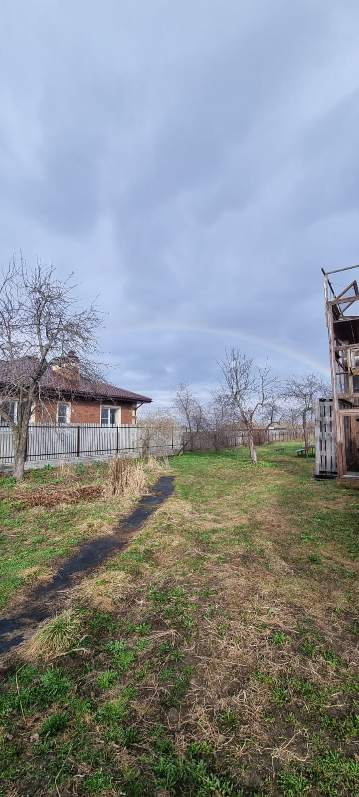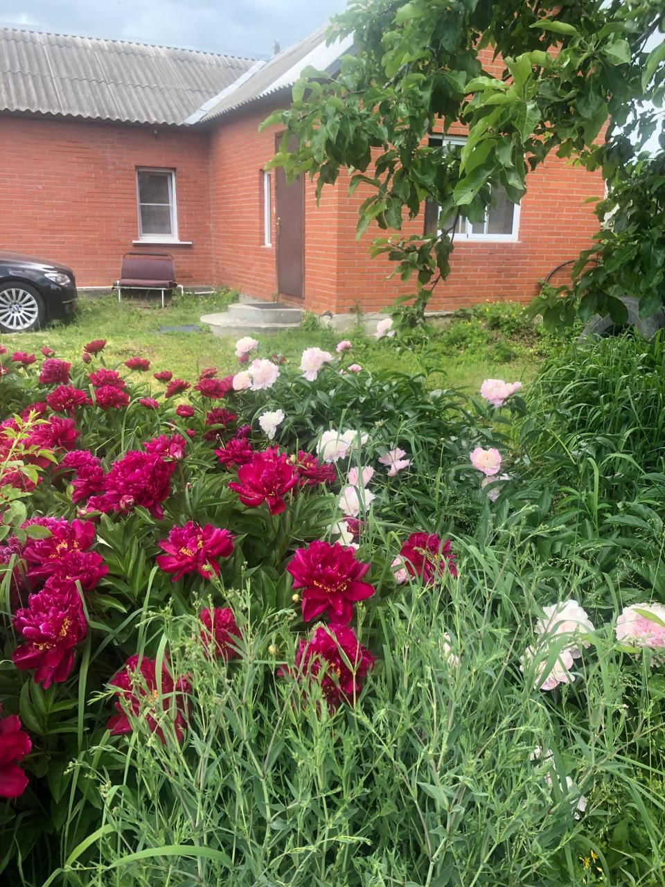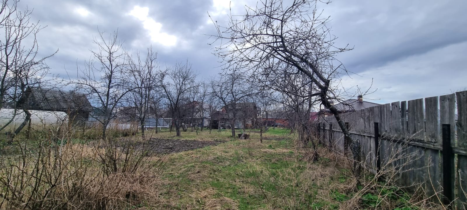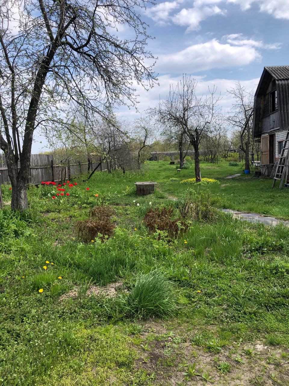 Большой сад с плодовыми деревьями и кустарниками: груши , яблони, черешня, калина, смородина красная и чёрная, малина, виноград зелёный