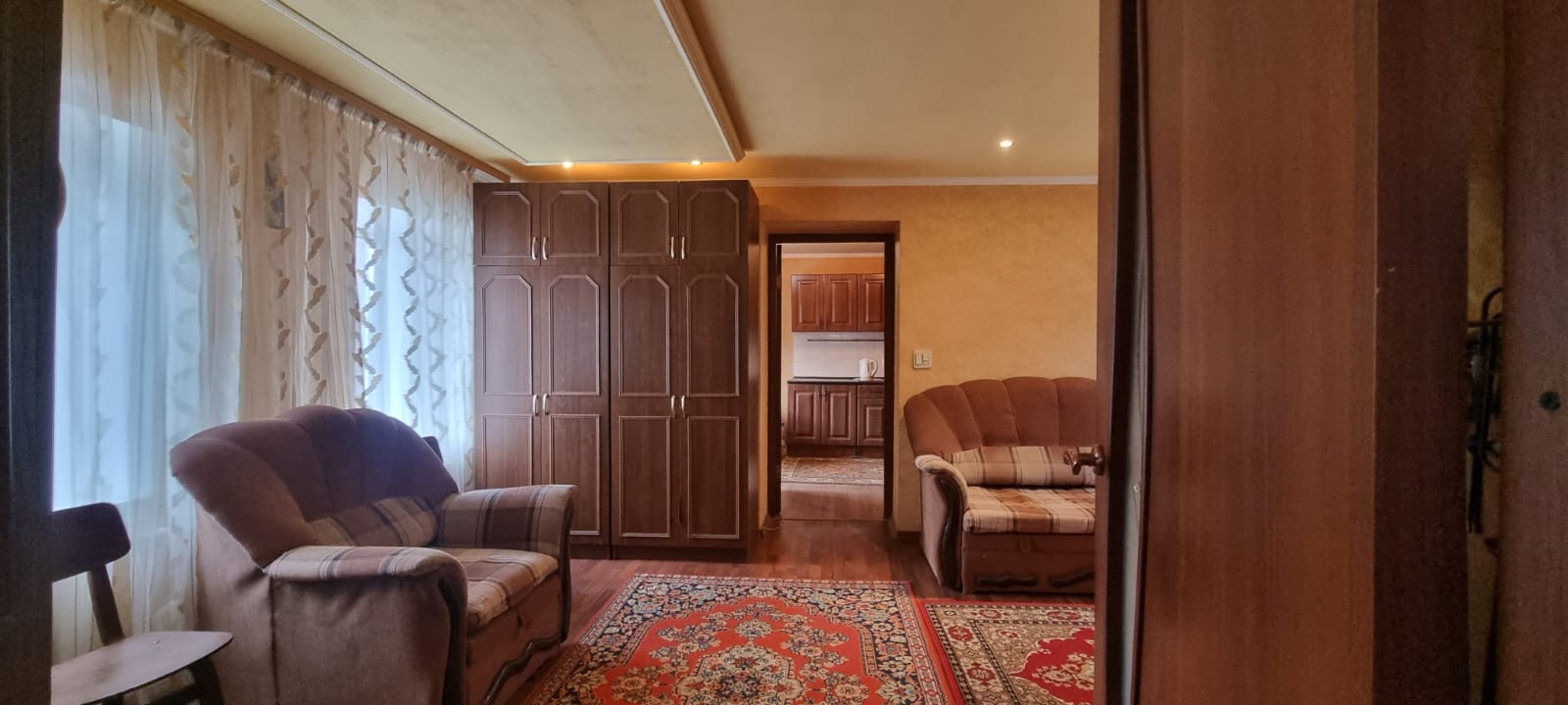 Две просторные комнаты, большая кухня гостинная, санузел в доме, терасса.