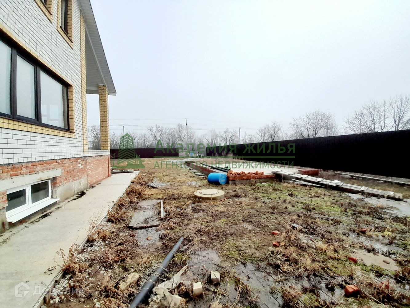 Во дворе возведен фундамент для строительства гаража и бани.