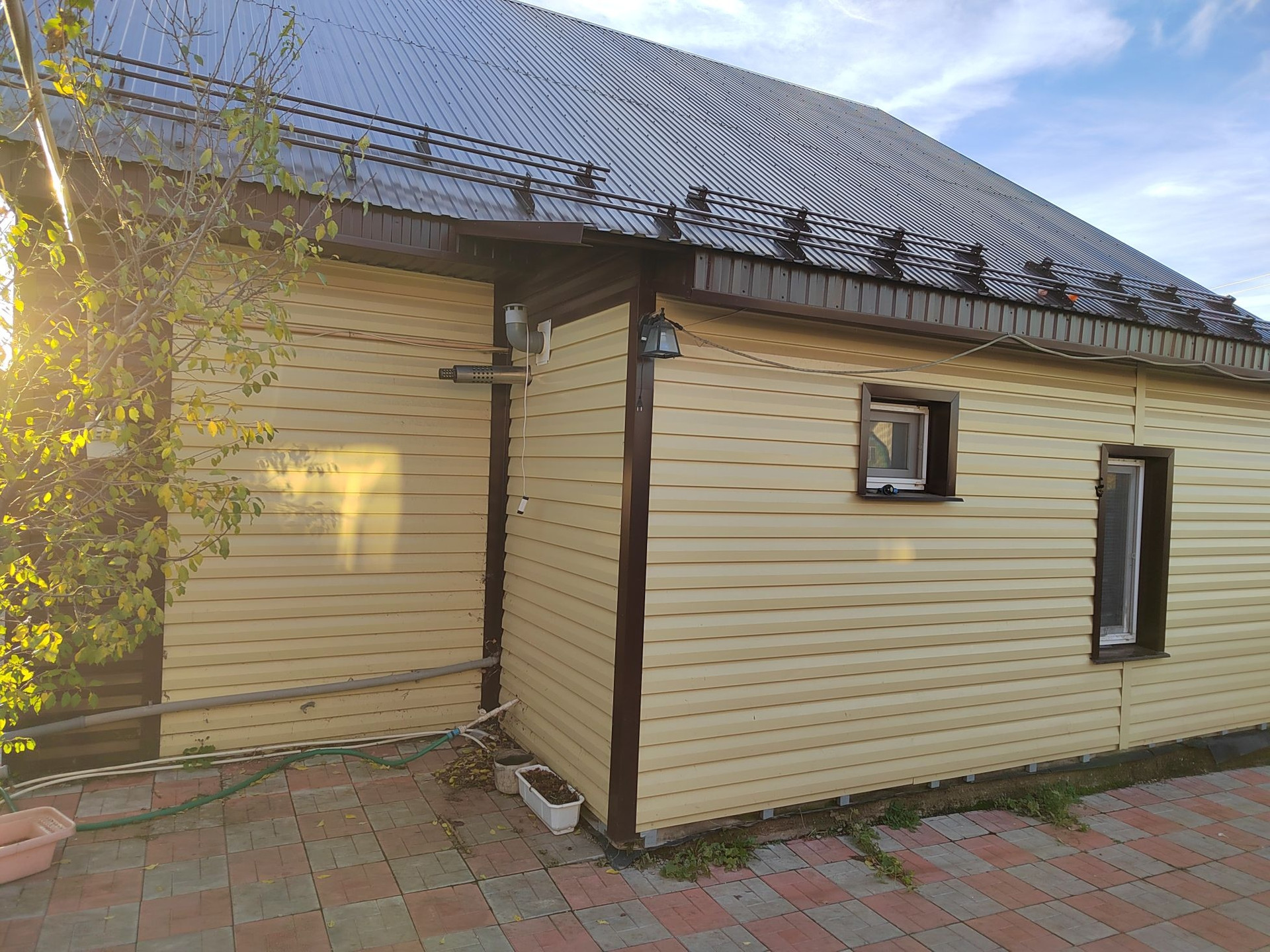 Продаётся дом мансардного типа! На втором этаже нет ничего, используется как чердак!В доме 3 спальни(14кв, 11кв, 10кв) Проходная гостиная(26кв)Сан узел совмещённый (8кв)кухня 16кв! Прихожая 7кв и котельная 4 кв!Так же в доме гараж 28 кв! По всему дому тёплый пол  и радиаторы!На участке находятся летний душ, туалет и летняя кухня!Дворовые постройки не оформлены! Есть мангальная зона с навесом!