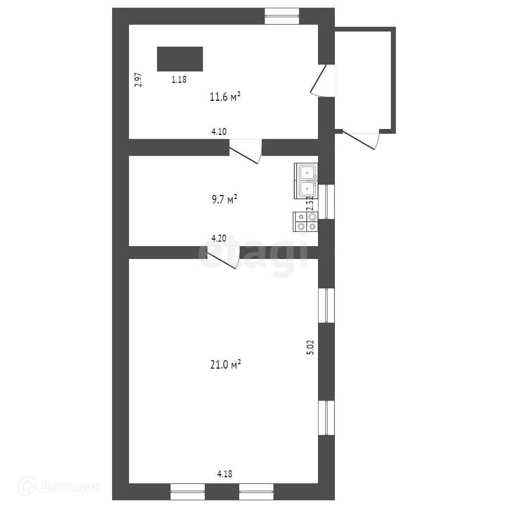 Площадь дома 42,3 кв.м. Дом очень теплый и построен из кирпича, что обеспечит тепло зимой и прохладу летом. Большая уютная кухня соберет за своим столом всех самых близких.