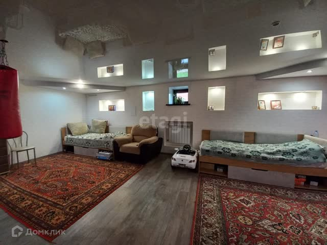 В доме выполнен современный ремонт из качественных строй-материалов.Стены штукатурка ,обои.На полу ламинат. Натяжные потолки с точечными светильниками.