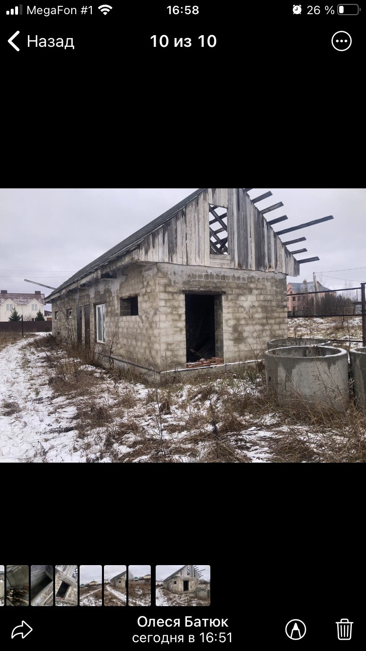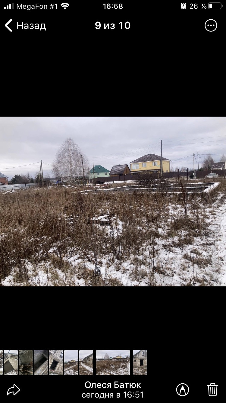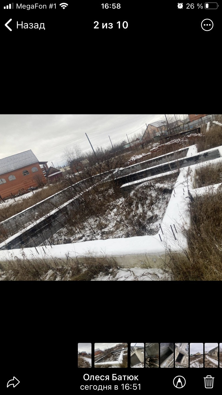 12 соток земли фундамент 100 квадратных метров ,Гараж 150 квадратных метров с подвалом ,проведена канализация ,газ. Рядом есть школа и детский сад