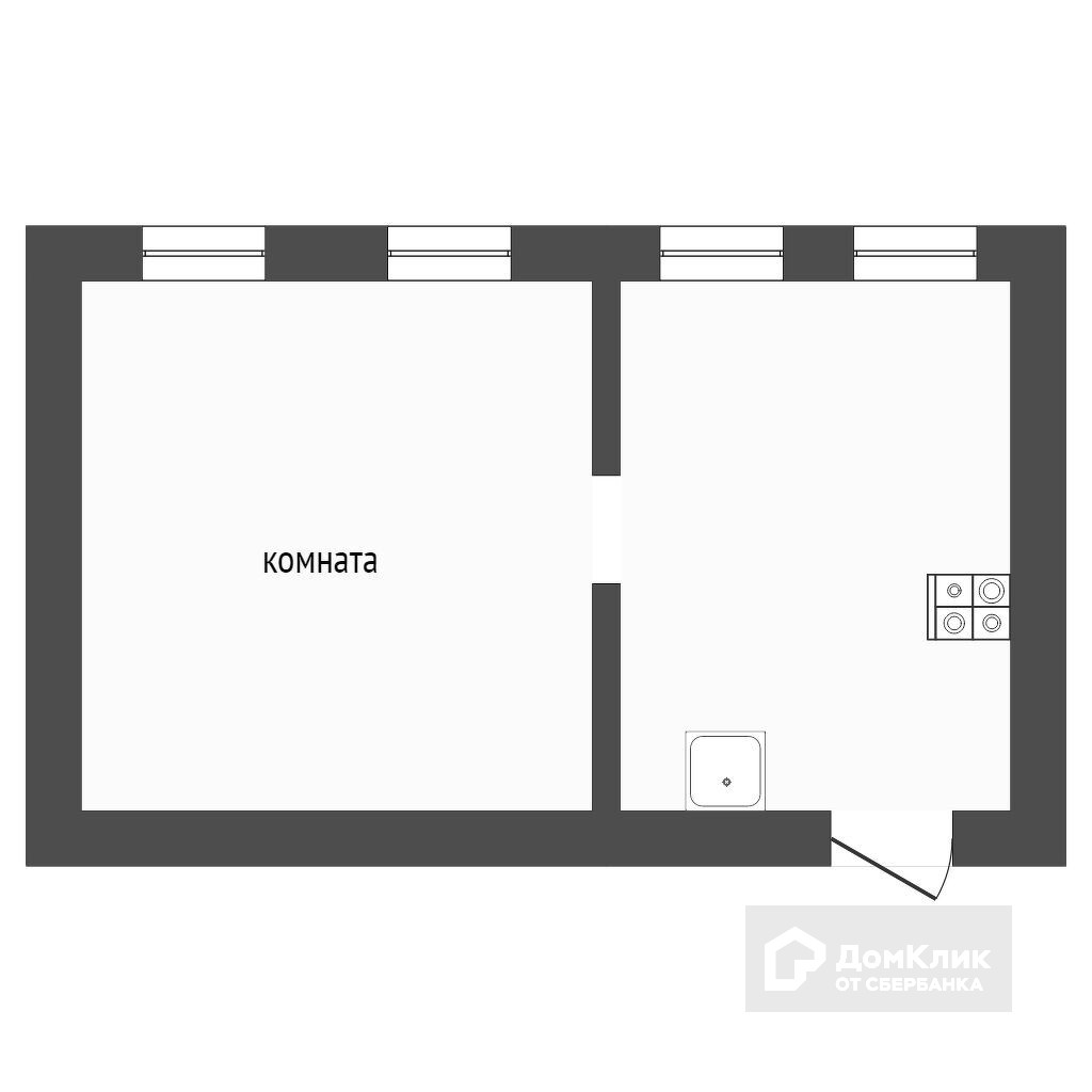 Общая площадь 33.5 м2