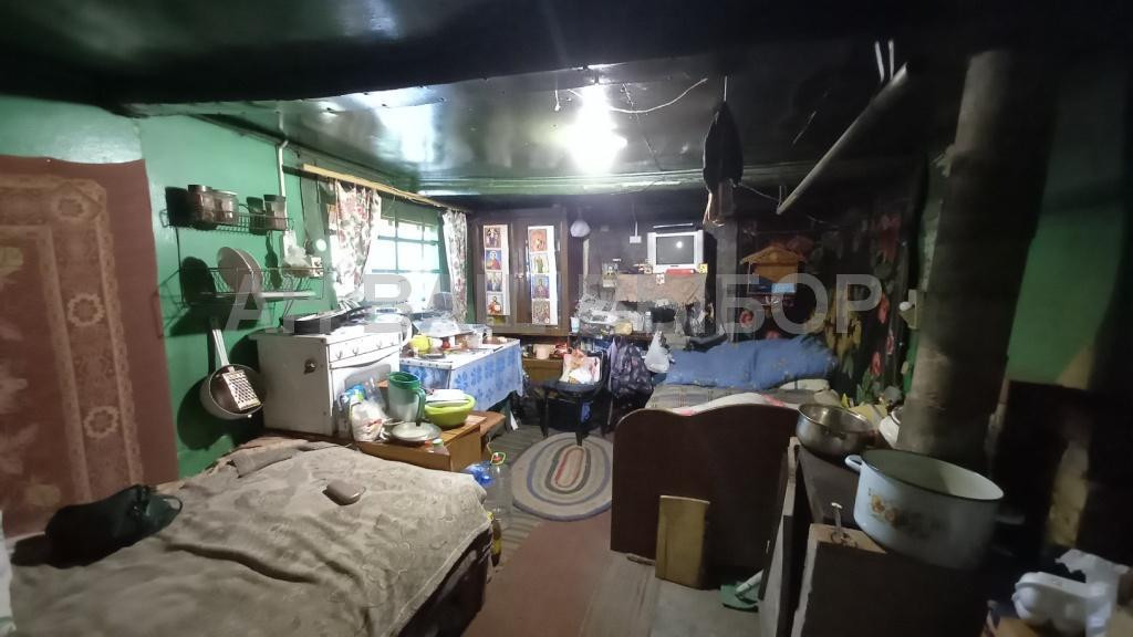 В домике комната, баня всё под одной крышей.