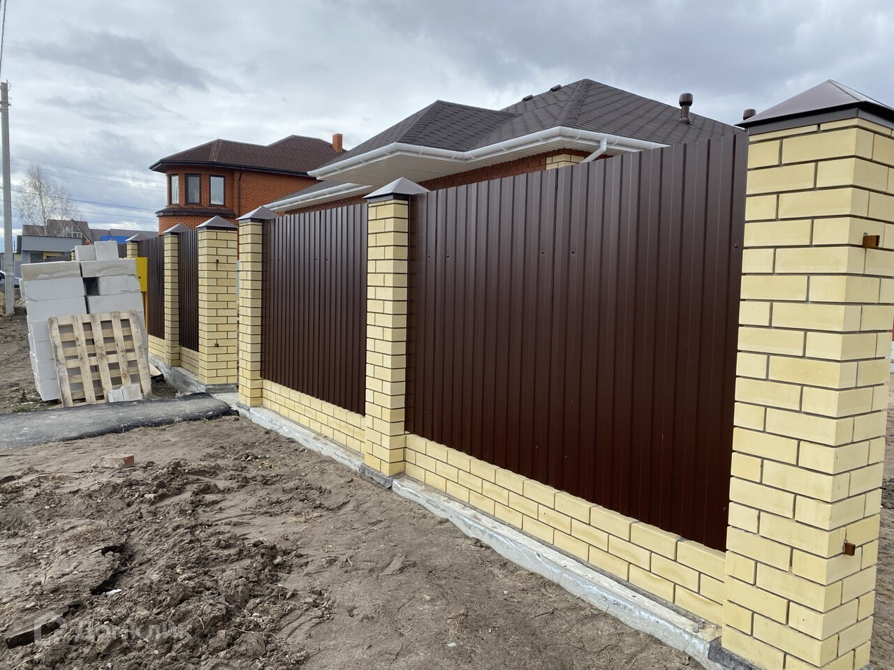 Участок огорожен забором .