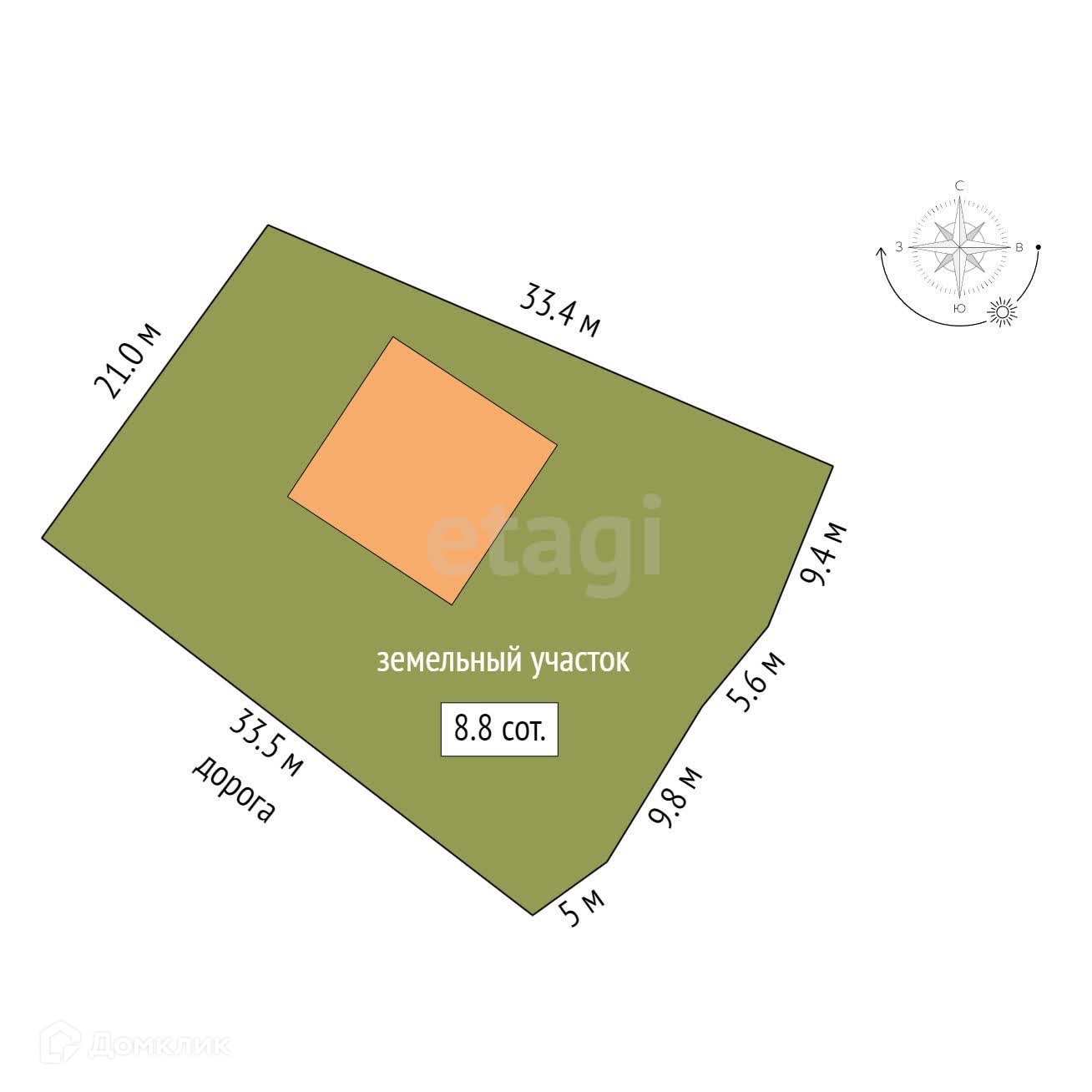 Площадь участка 8.8 сот.