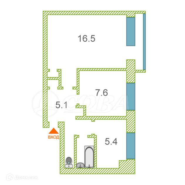 Общая площадь 38.4 м2