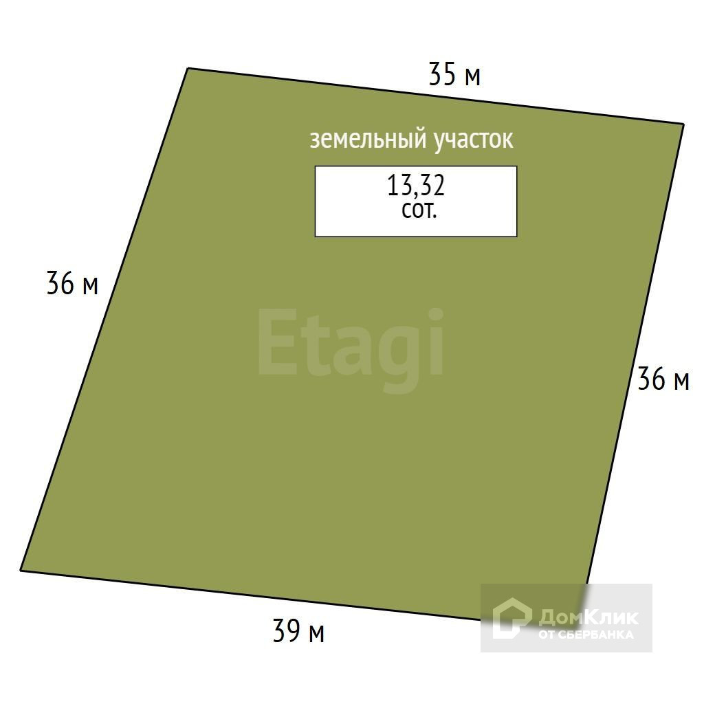 Площадь участка 13.32 сот.