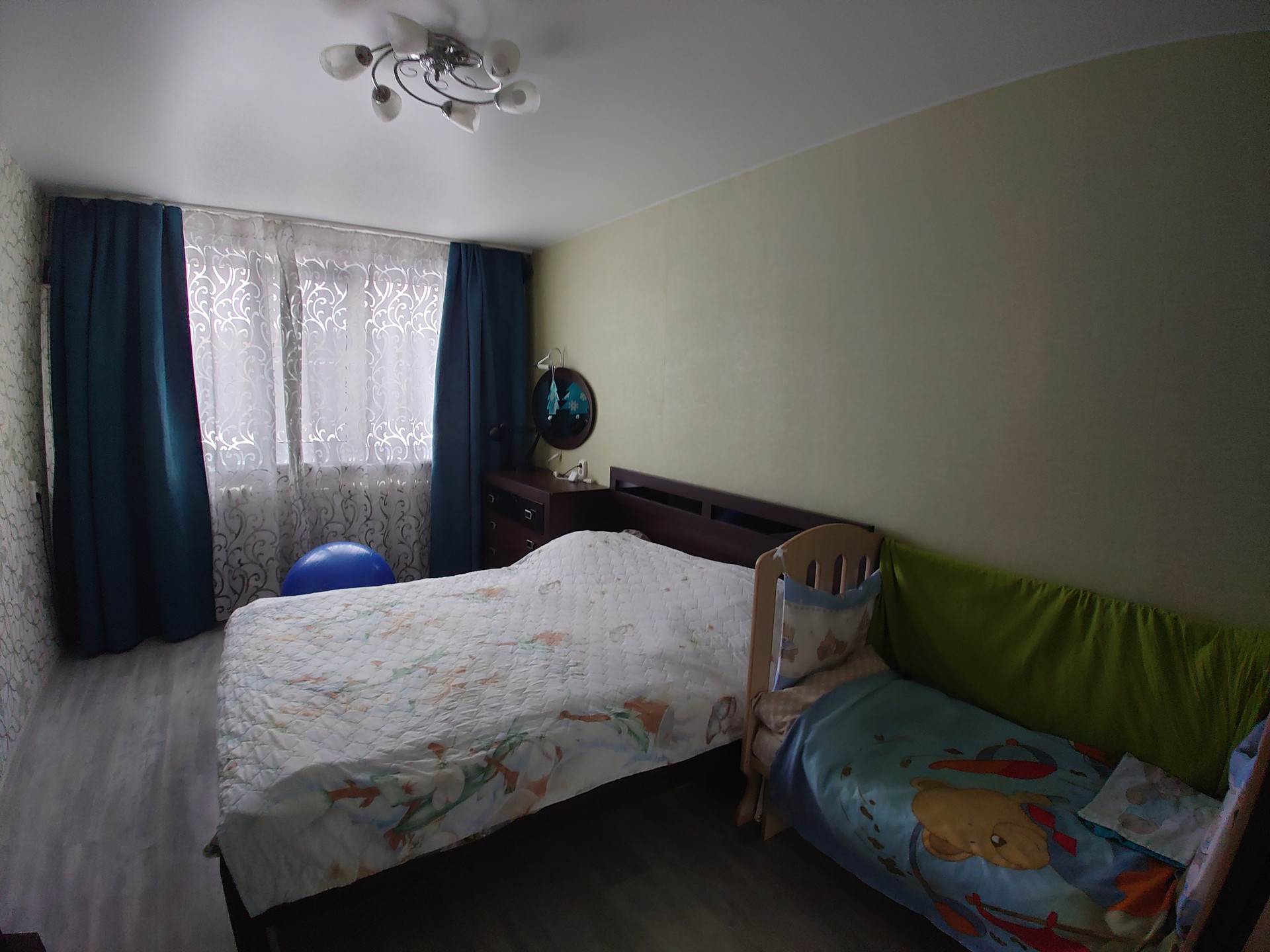 -  Пол наливной (выровнен) и уложен качественный ламинат 33 класса, 8-9мм (на тёплой подложке).