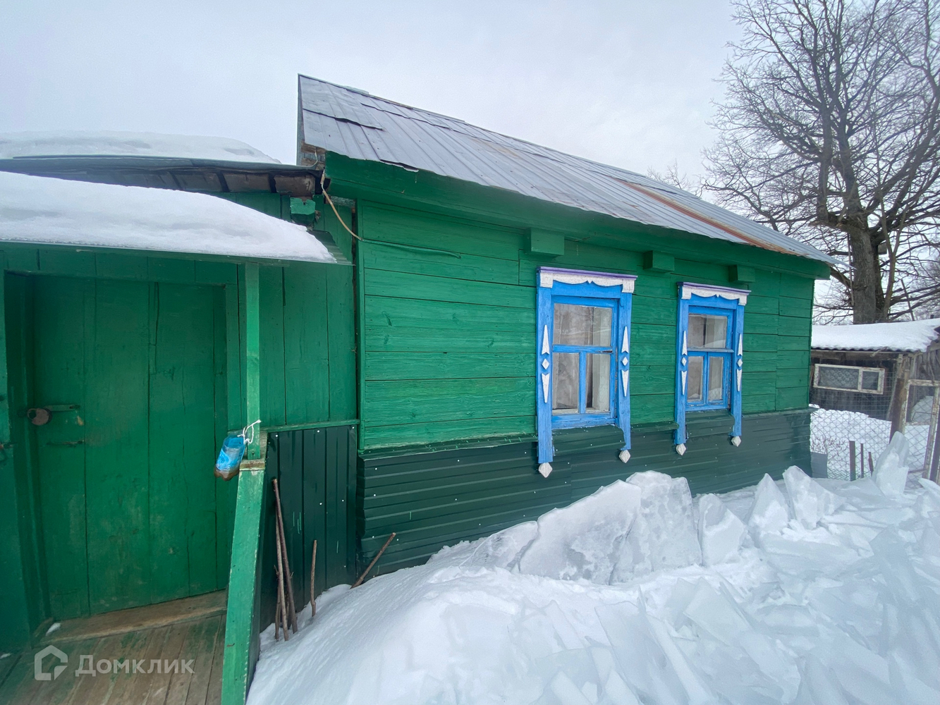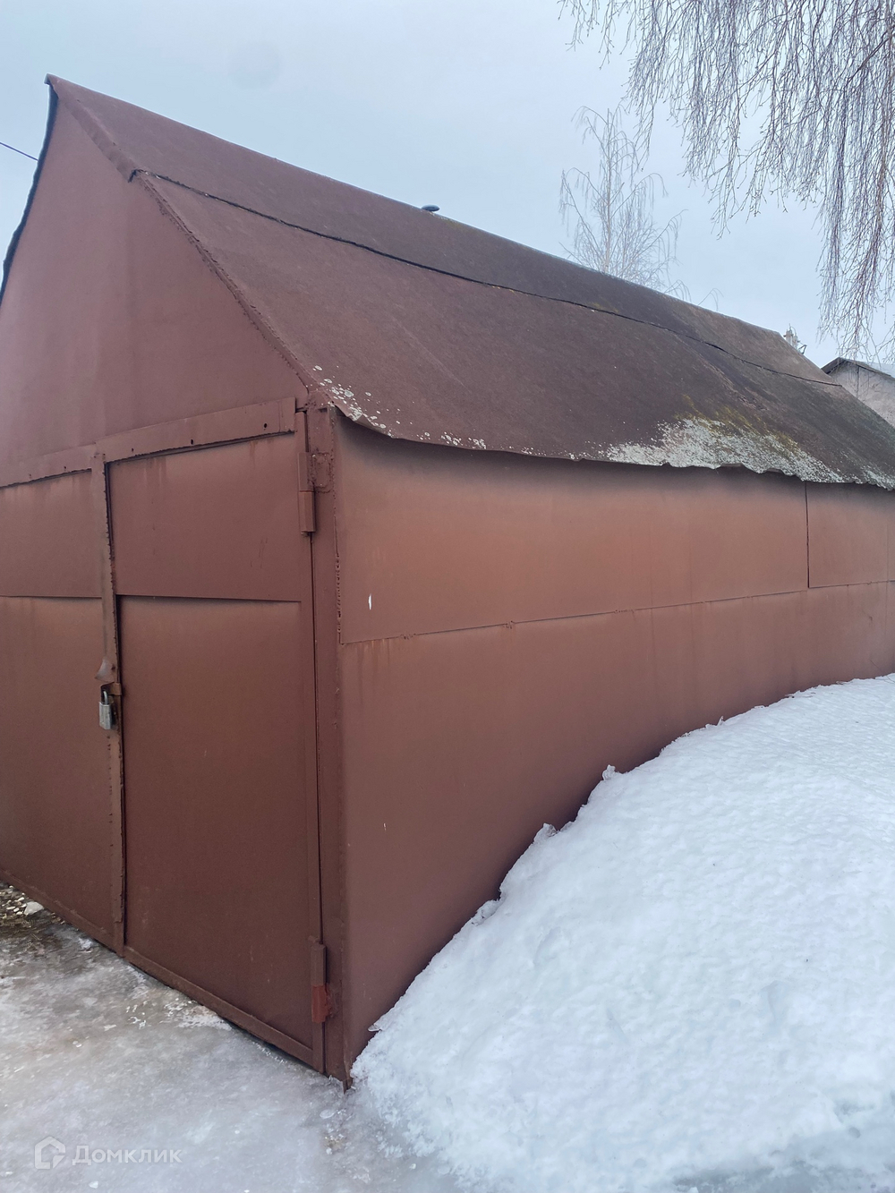 На участке расположен сарай и железный гараж.