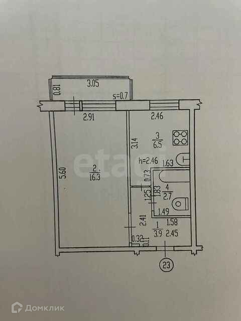 Балкон, лоджия 1 балкон