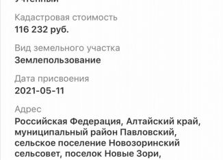 💲 Какая средняя цена продажи участка в поселке Новые Зори, Алтайский край?