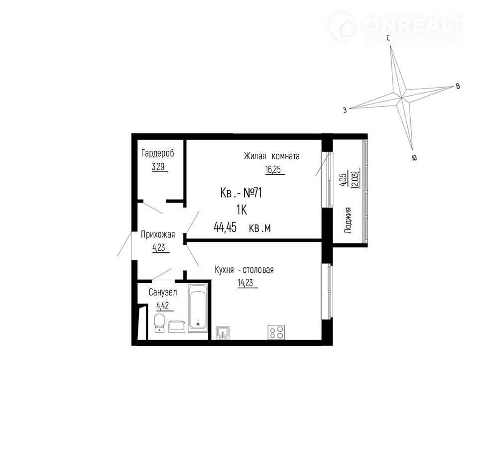Балкон, лоджия 1 лоджия
