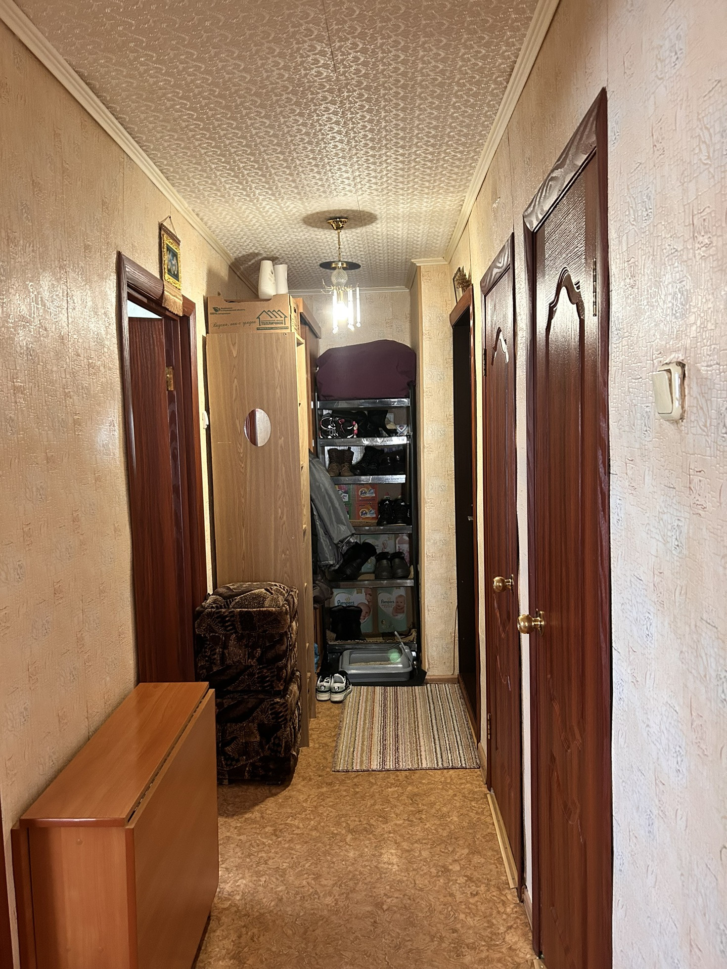 Чистая уютная квартира, на втором этаже 2х этажном кирпичном доме. Находится в центре посёлка, есть все необходимое для комфортной жизни.