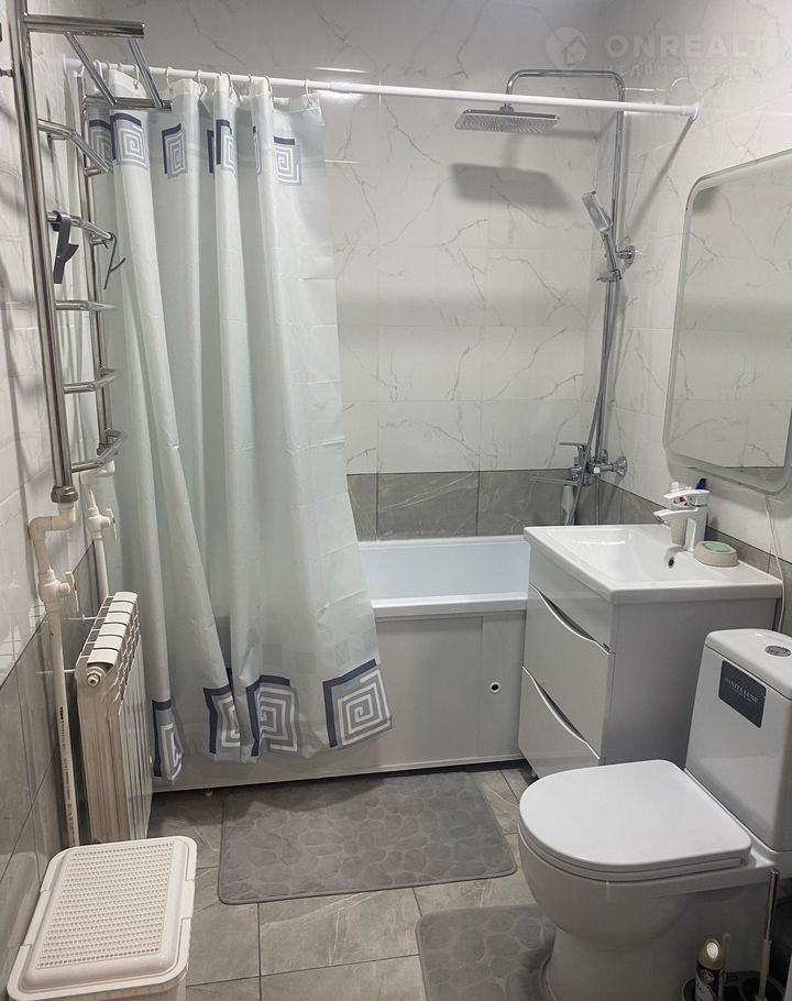Кухня светлая и просторная, оснащена всей необходимой техникой, включая плиту и микроволновую печь. Ванная комната совмещена с туалетом и оборудована современной сантехникой.