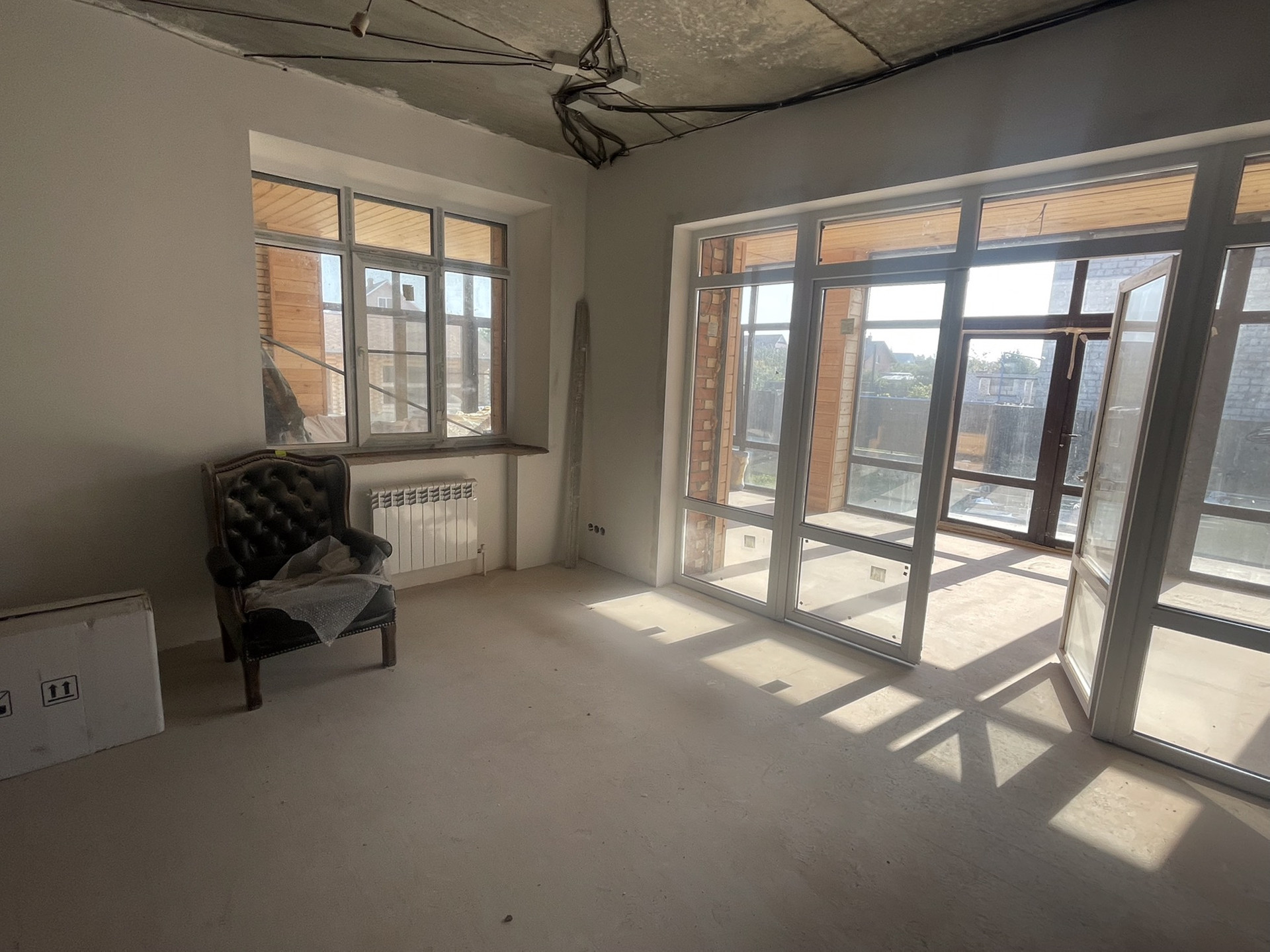 2-уровн.коттедж с евроотделкой    в с/узлах.Бетонные перекрытия, стены утеплены-оштукатурены, крыша из мягкой кровли, высота потолков 2,7 м., витражные окна.