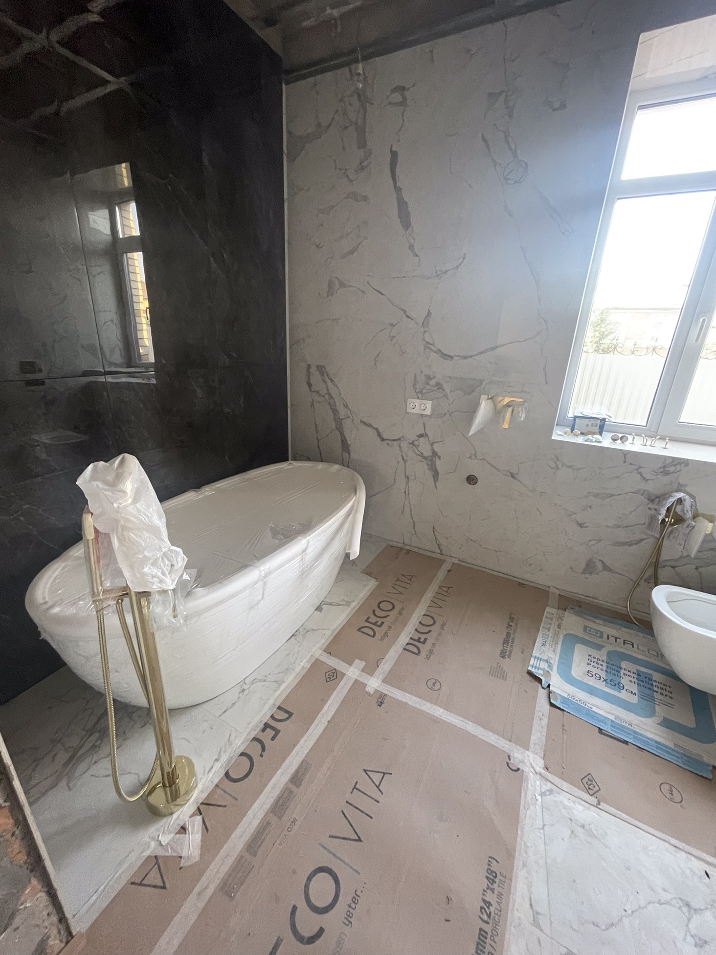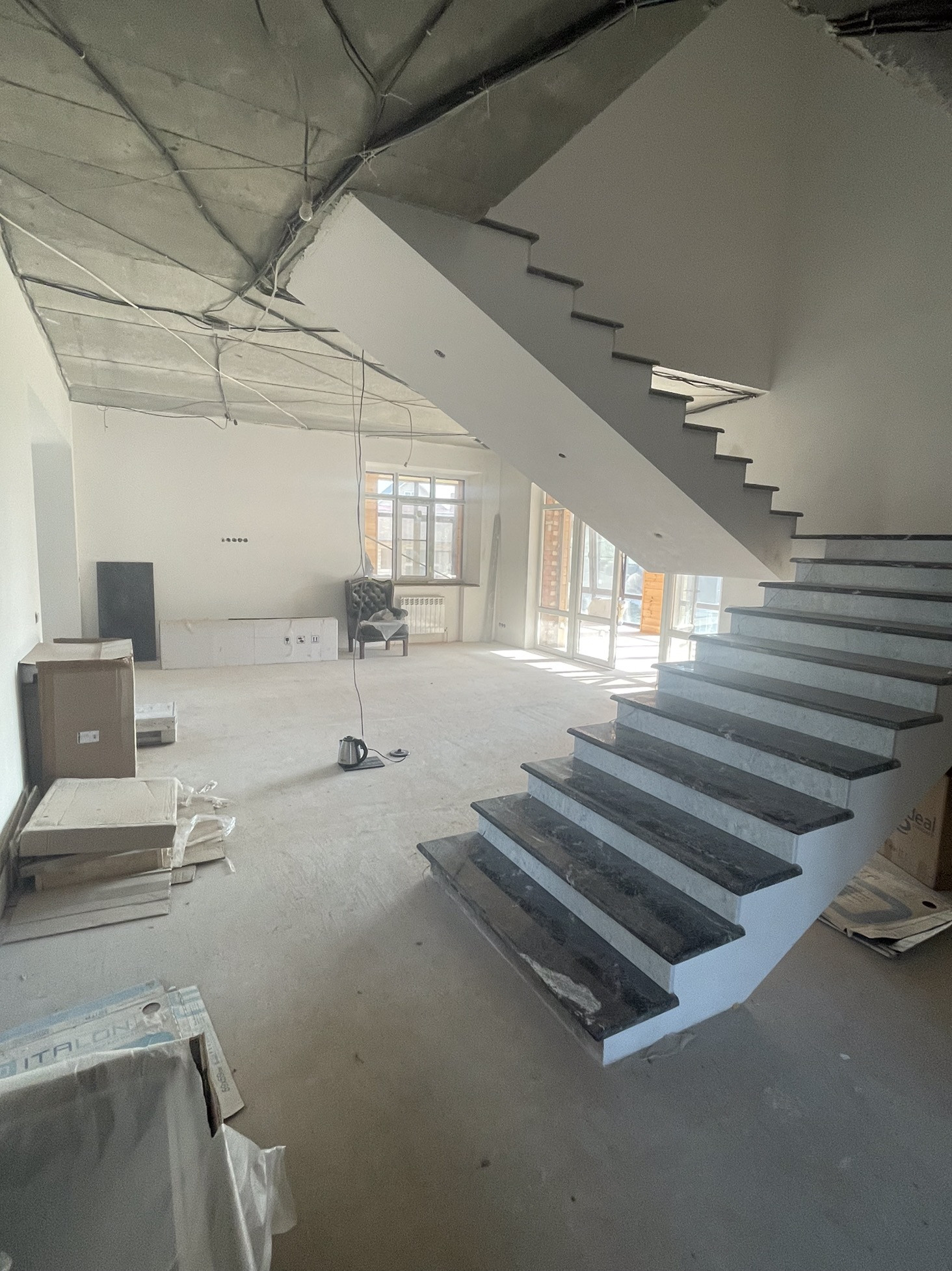 Выход из дома в гараж, на отапливаемую стеклянную террасу.      2 этаж. Две комнаты, хозяйская спальная с большим с/узлом-мрамор, отдельно стоящая каменная ванна, душевая,элитная сантехника,с гардеробной и кабинетом(либо дополнительной детской либо вторая гардеробная).