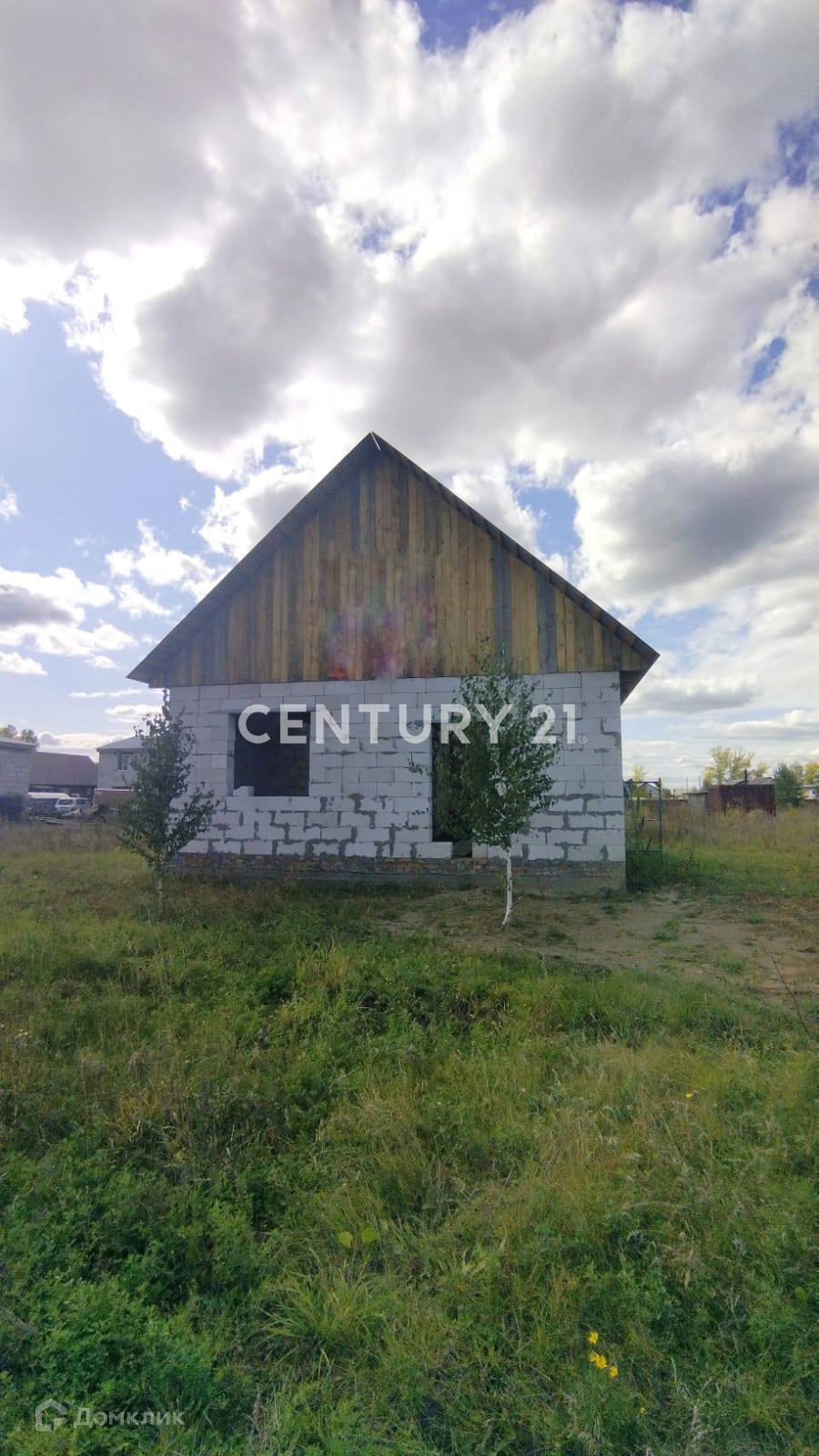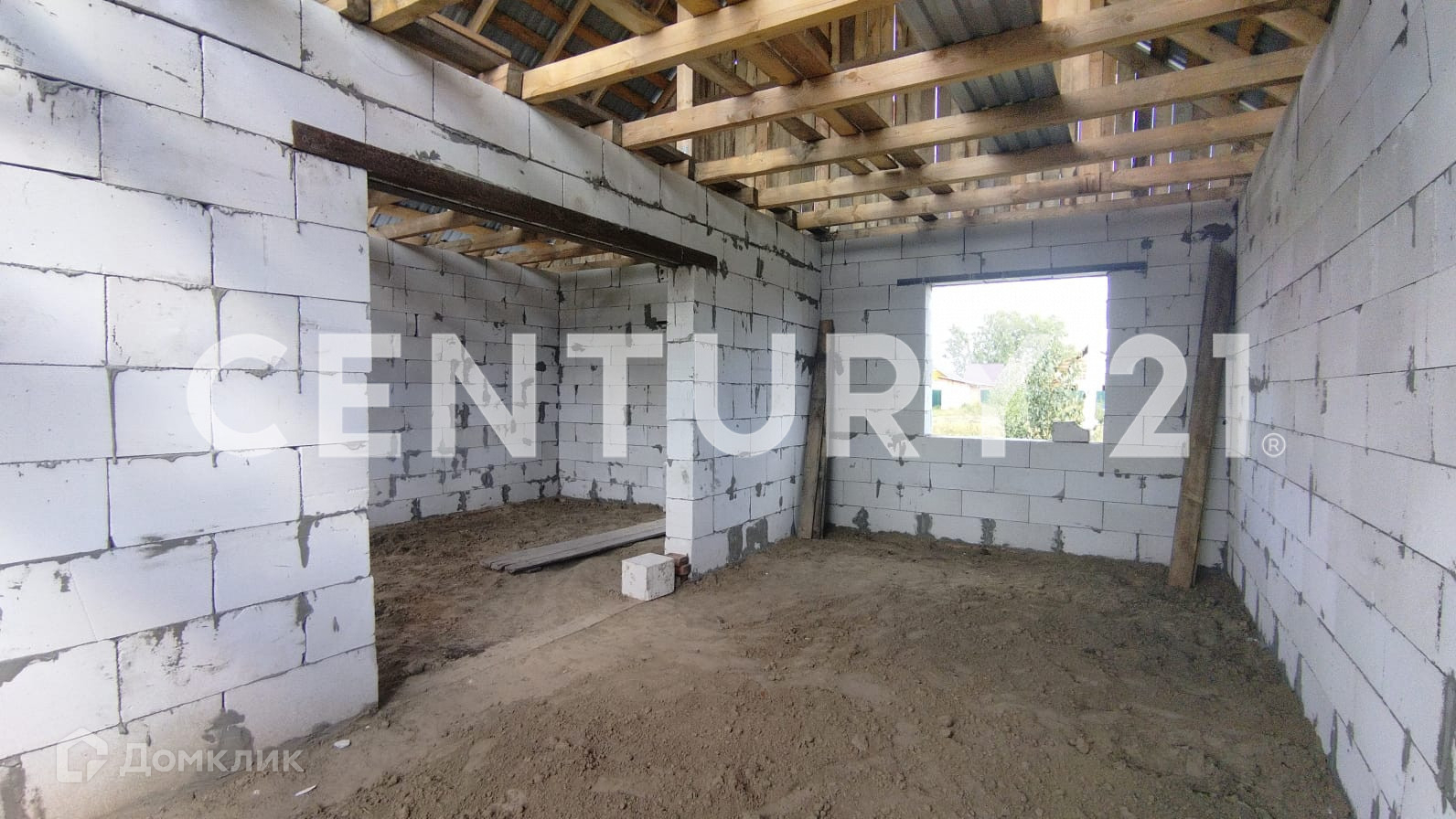 На  данный  момент  возведены  стены  из  газобетона  марки  "Сибит"  на  ленточном  фундаменте  8х8м,  металлическая  кровля  из  профнастила.