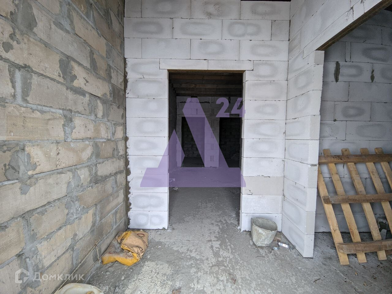 В основе - ленточный фундамент-пятистенок общей высотой 1,5 метра и шириной 0,5 метра. Залита бетонная плита (подпола нет), в которой заложены канализация, вентиляция, а также ввод труб водоснабжения в дом. В помещении котельной залит бетонный погреб 8 кв. метров и глубиной 2,2 метра. Внешние стены и несущая стена вложены из газоблока D-700. Над дверями первого этажа и окнами - бетонные перемычки, залито два армопояса (после первого и второго этажей)