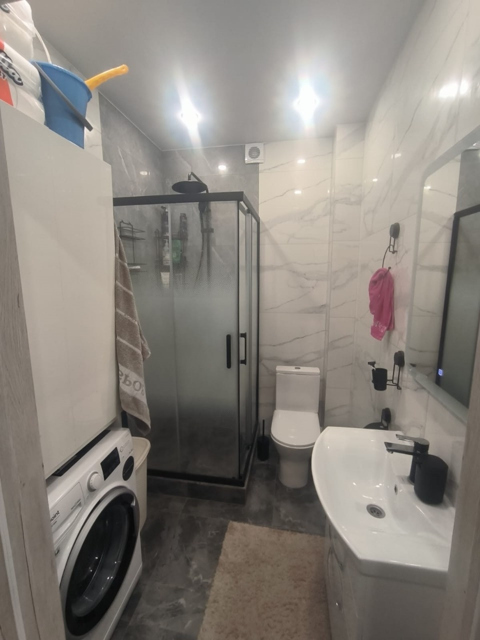 Санузел совмещен., стены, полы в кафеле. Вся сантехника установлена.