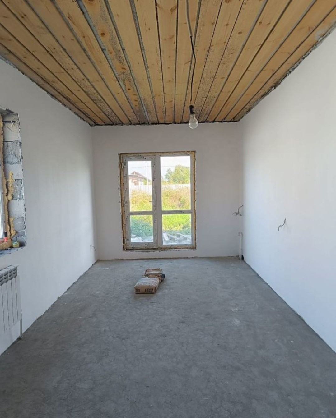 просторная кухня-гостиная с большим панорамным окном и с выходом на задний двор