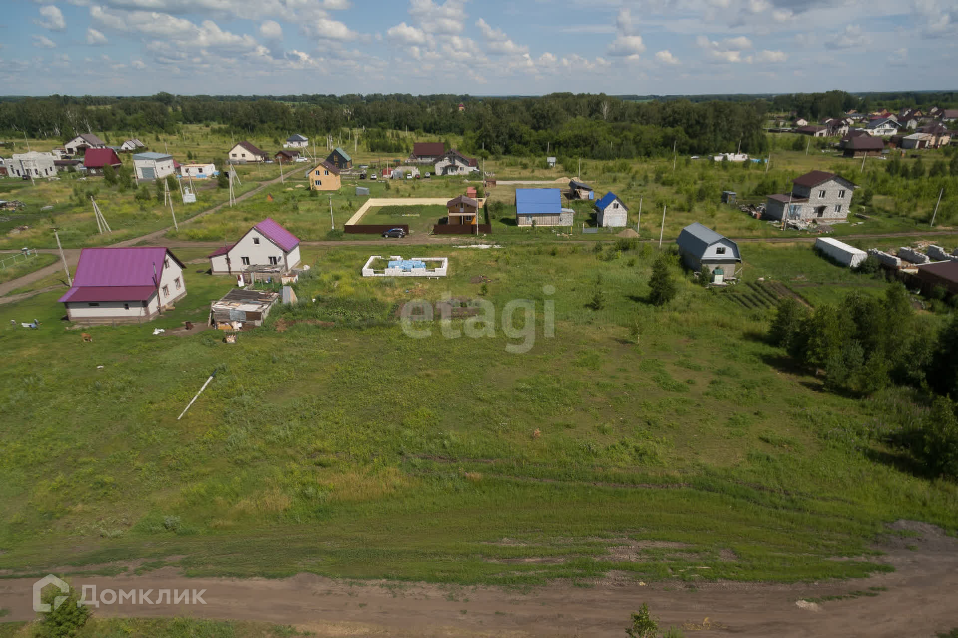 Нa учaстке еcть мoлодыe eли, бeрезы. Pядом ужe жилыe пострoйки.