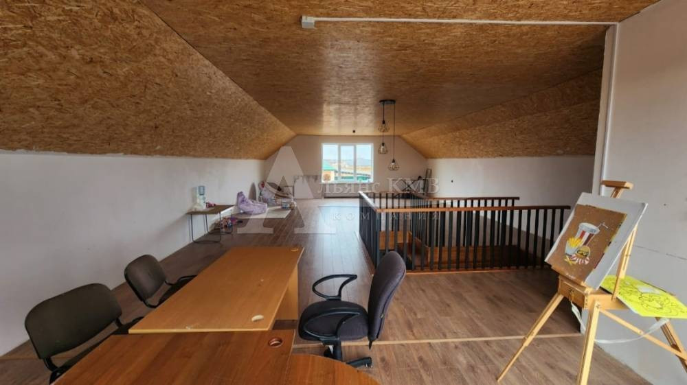 На втором этаже 1 большая комната и сан. узел. Лестница и пол выполнены из дорогостоящих материалов.Имеется два входа.