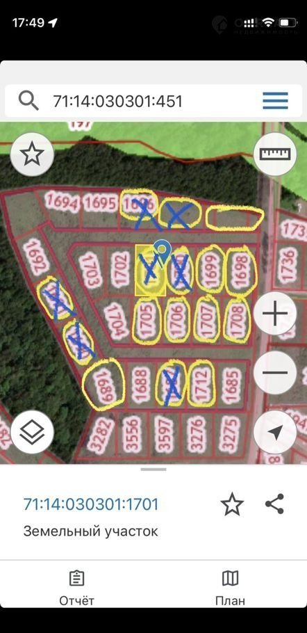Кадастровый номер одного из участков 71:14:030301:1698, расположен непосредственно возле асфальтовой дороги.