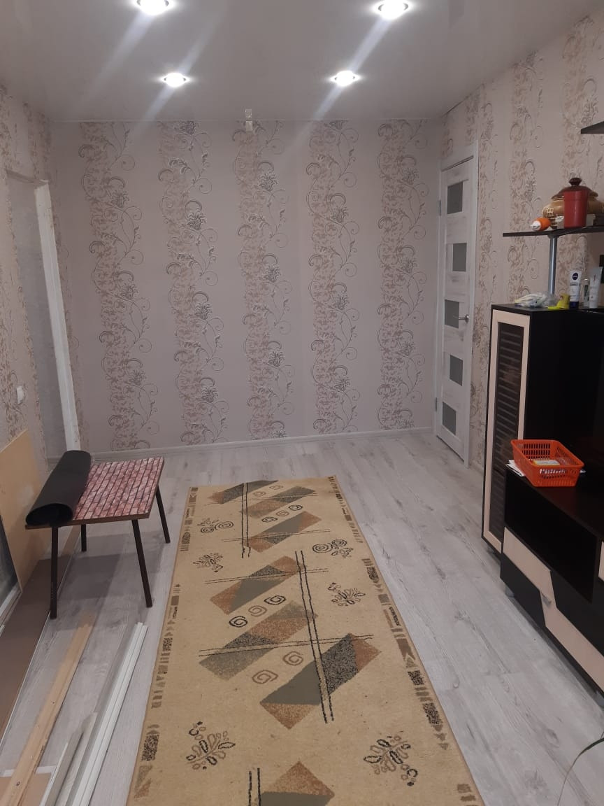 В квартире сделан свежий ремонт, пластиковые окна, ламинат, натяжные потолки,межкомнатные двери, сейф двери, остается новый кухонный гарнитур, газ (баллон), вода (титан),