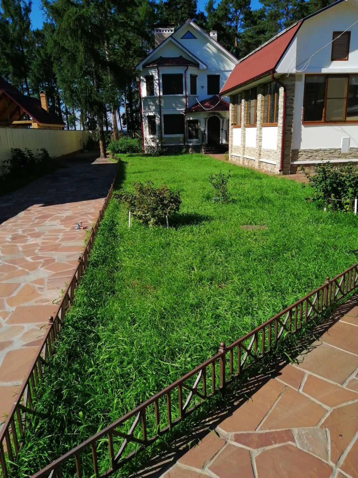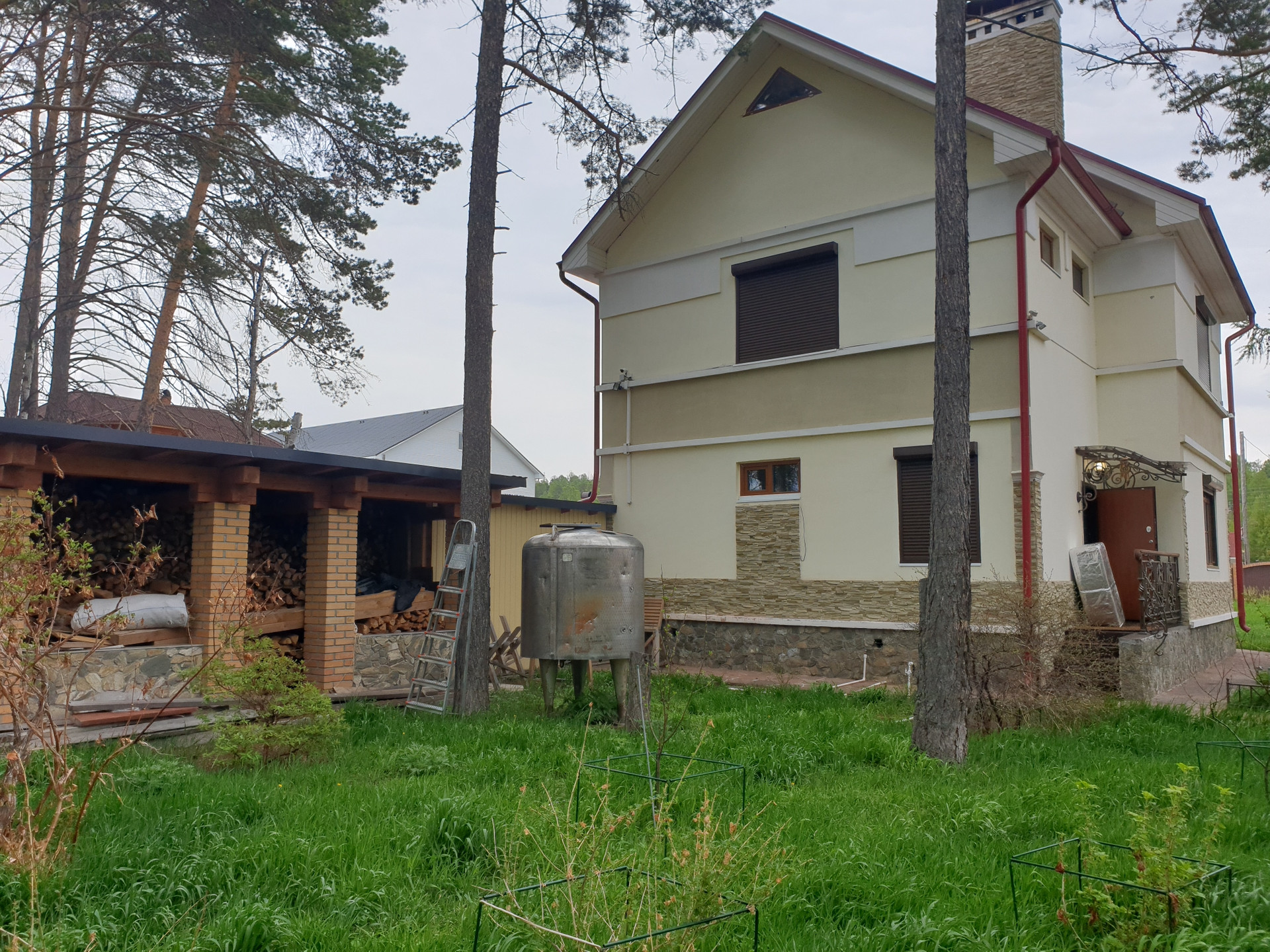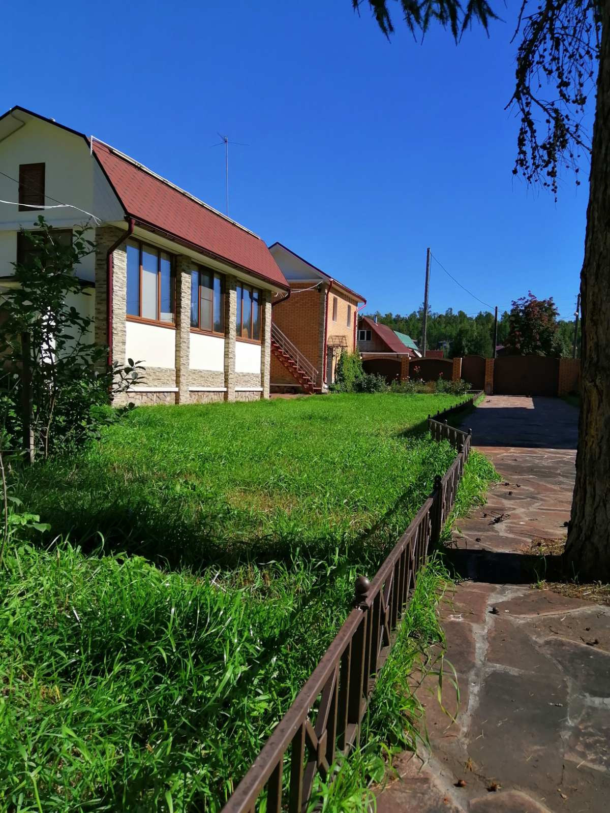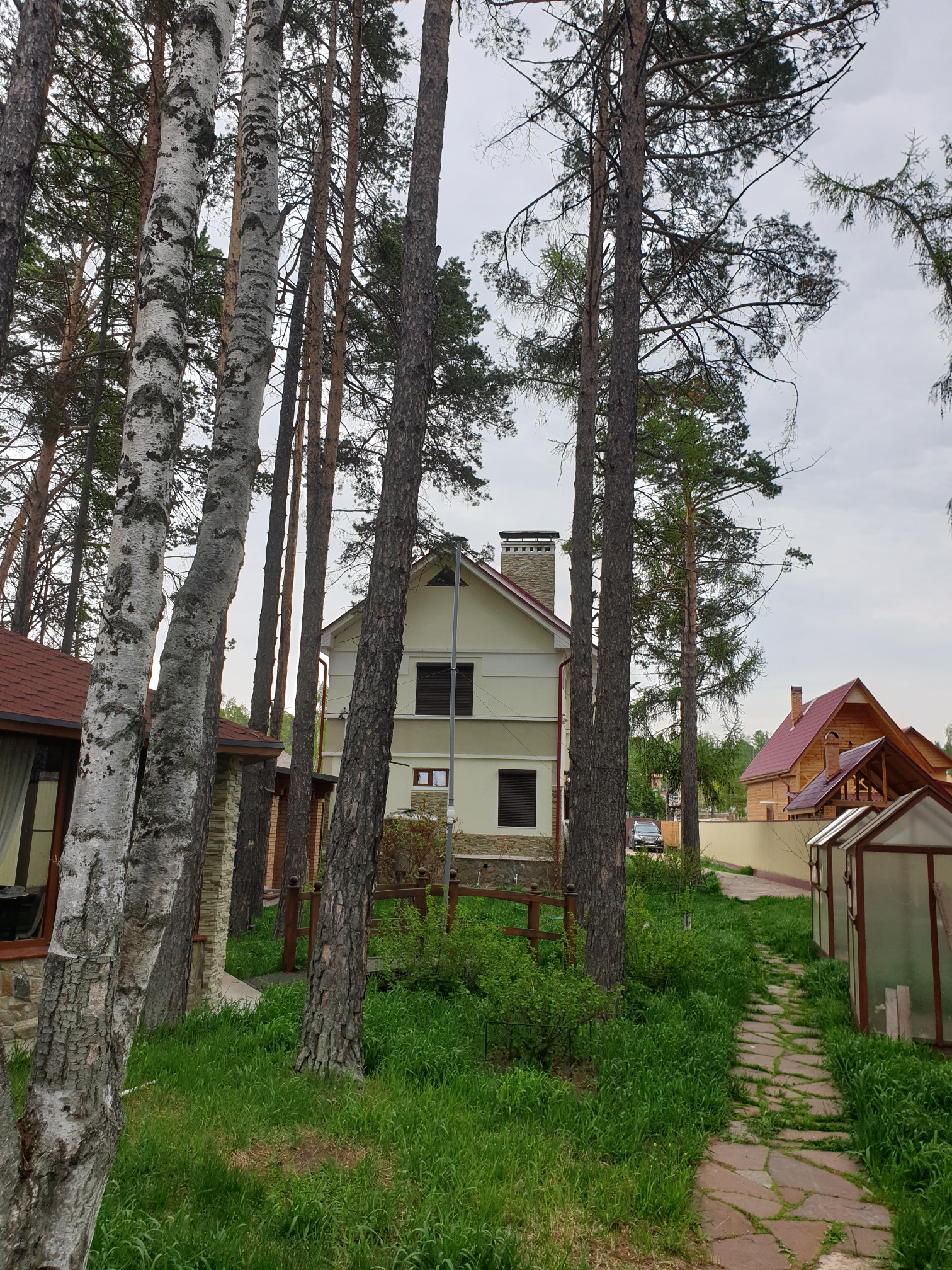 На участке расположен 2-этажный коттедж, созданный по индивидуальному проекту, теплый бассейн, "Летний зал" или витражная беседка, мангальная зона, гостевой дом с санузлом, гараж.
