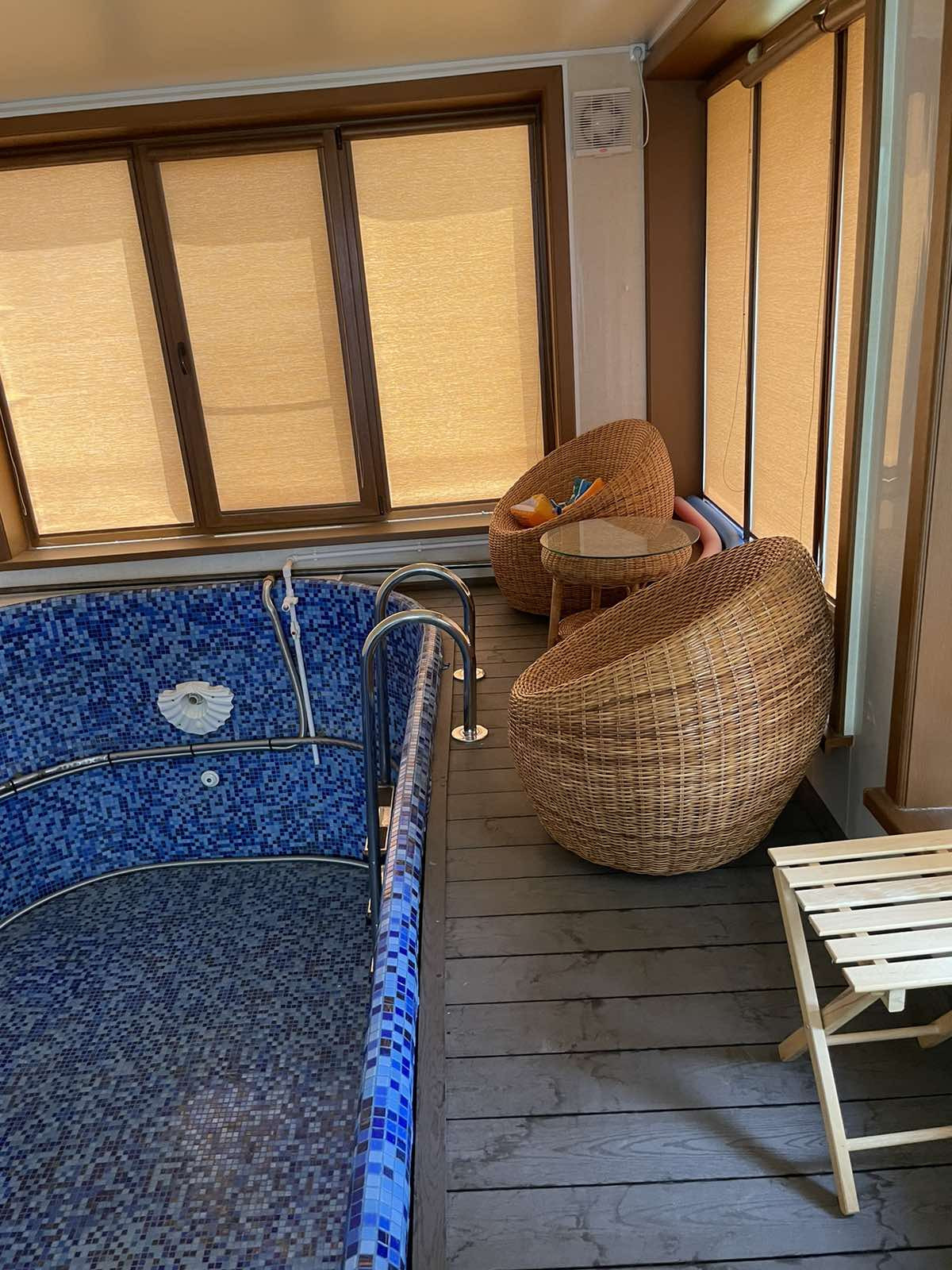 В бассейн установлена система - ПРОТИВОТОК и система очистки, есть душевая кабина.