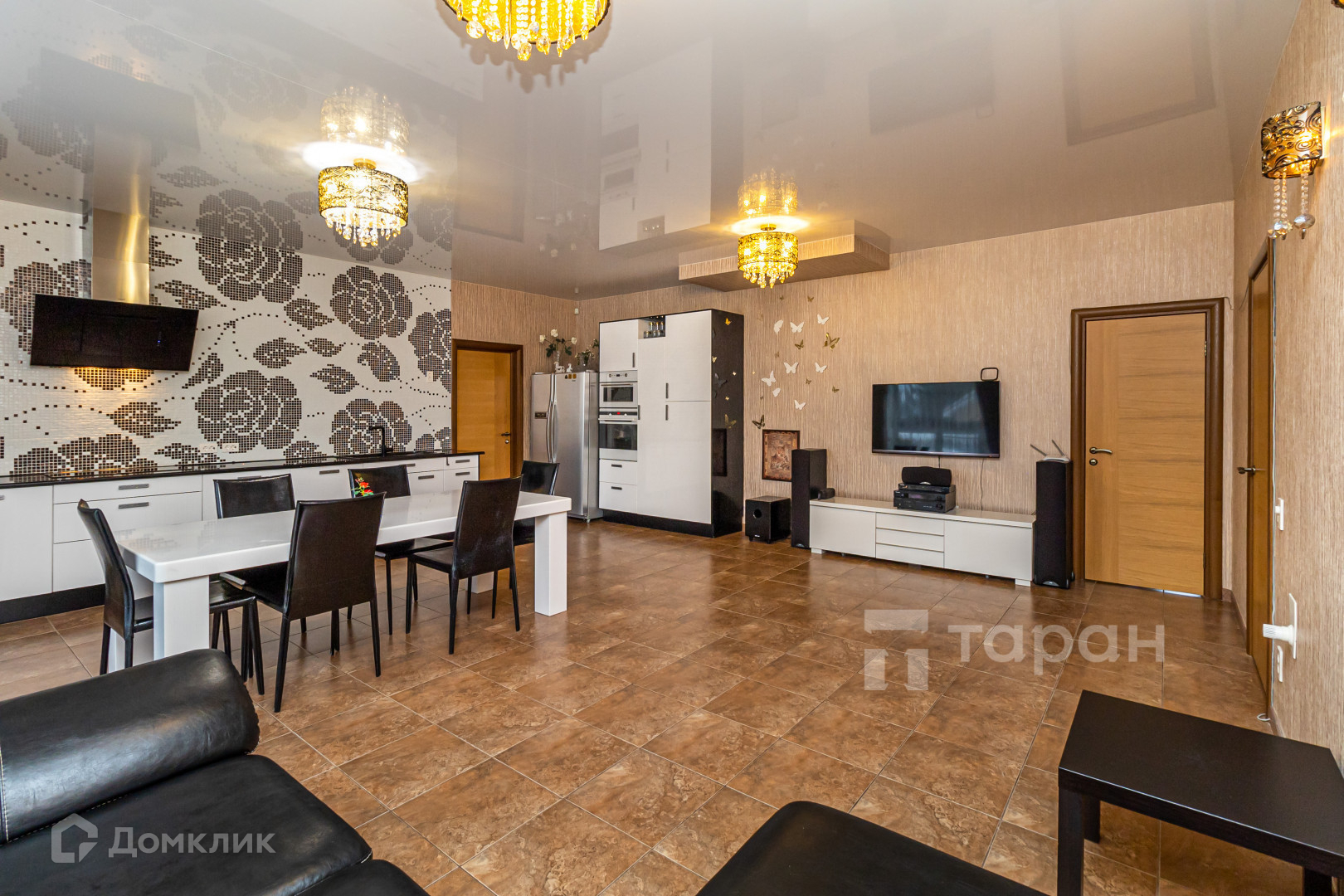 большая кухня-столовая с выходом на террасу
