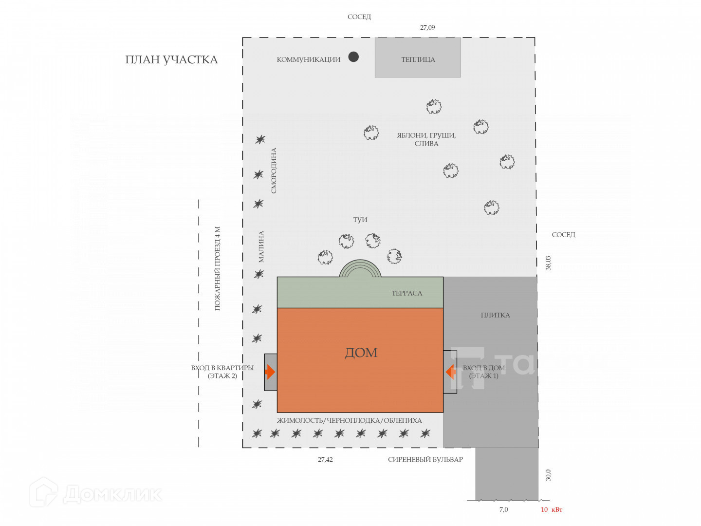 11,2 сотки + 3 сотки огороженная придомовая территория (стоянка во дворе на 10 автомобилей)