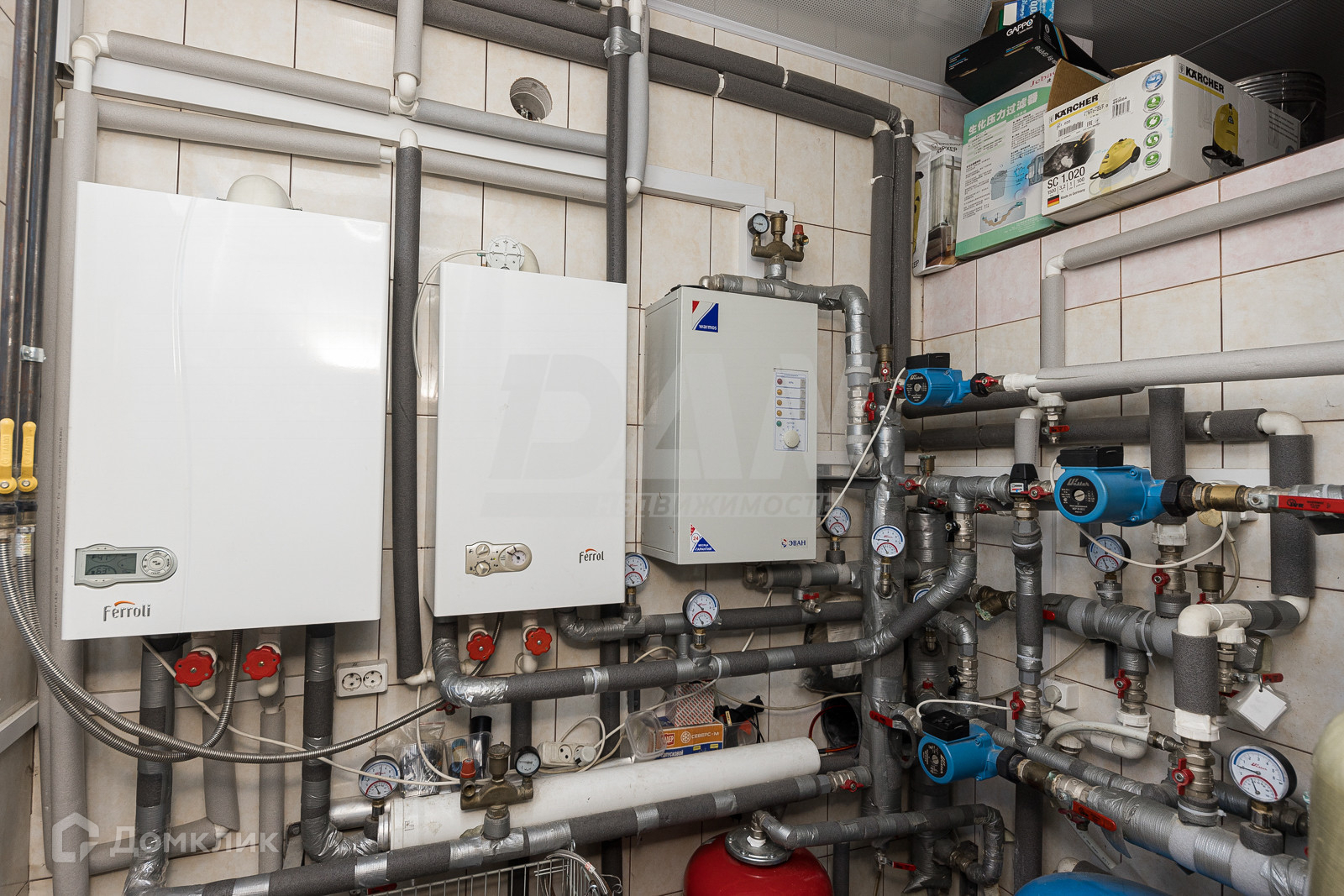 Дом тёплый: материал стен - газобетон ИНСИ (400 мм), облицован кирпичом. Проведён газ (два газовых котла и резервный электрокотёл). Тёплый водяной пол по всему первому этажу, радиаторы. Окна - металлопластиковые ламинированные 70мм, двухкамерный стеклопакет (3 стекла).