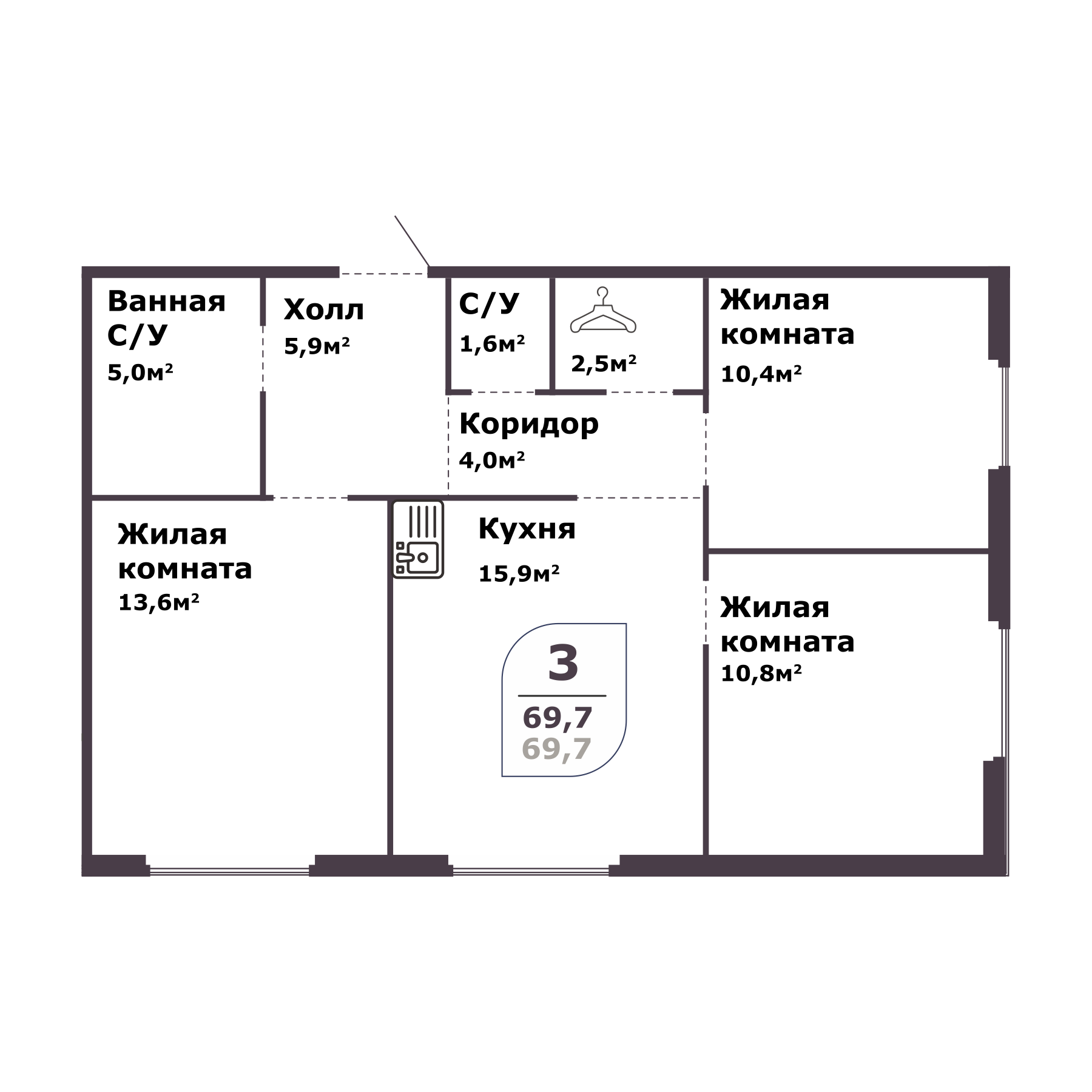 Общая площадь 69.7 м2