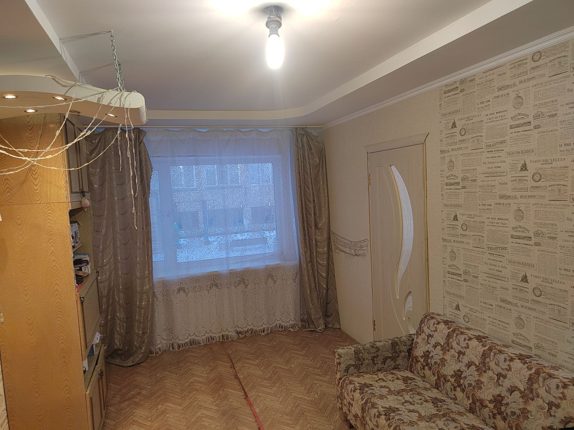 Состояние хорошее, выполнен качественный ремонт(осталось только доклеить обои в одной комнате). Переделана комната в кухню- студию. Все стены в шумоизоляции и утеплителе (в квартире очень комфортно зимой) . Проводка вся новая! Все двери заменены !В ванной комнате кафель, сантехника в рабочем состоянии, чистая ! В квартире никогда не курили, поддерживали чистоту!