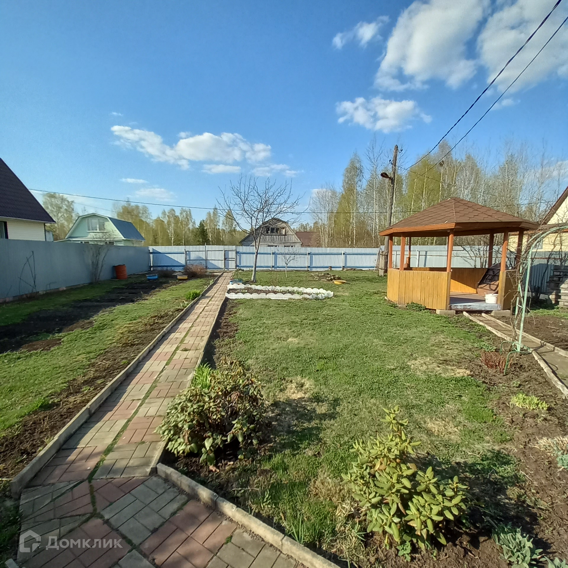 Участок ровный, сухой, правильной формы. Огорожен со всех сторон забором из проф. настила. Посажены плодово-ягодные деревья, цветы. Есть качели для отдыха, беседка, где можно проводить приятные летние вечера. Имеется колодец, хоз. блок, теплый душ, туалет.