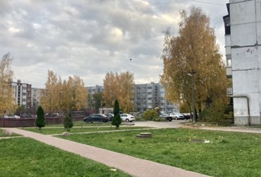 Тихий двор. Вокруг дома организованы пешеходные дорожки и красиво-обустроенные зелёные насаждения. Очень приятно прогуляться.